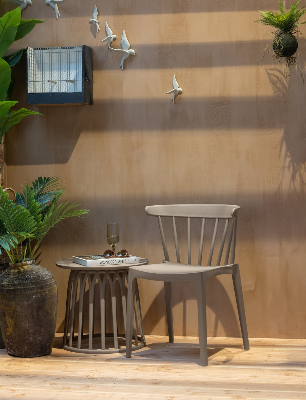 Bordet er laget i slitesterk polypropylen, et robust og fuktbestandig materiale som tåler daglig bruk og varierende værforhold. Den lette vekten gjør det enkelt å flytte etter behov, enten det brukes på terrassen, balkongen eller i stuen.