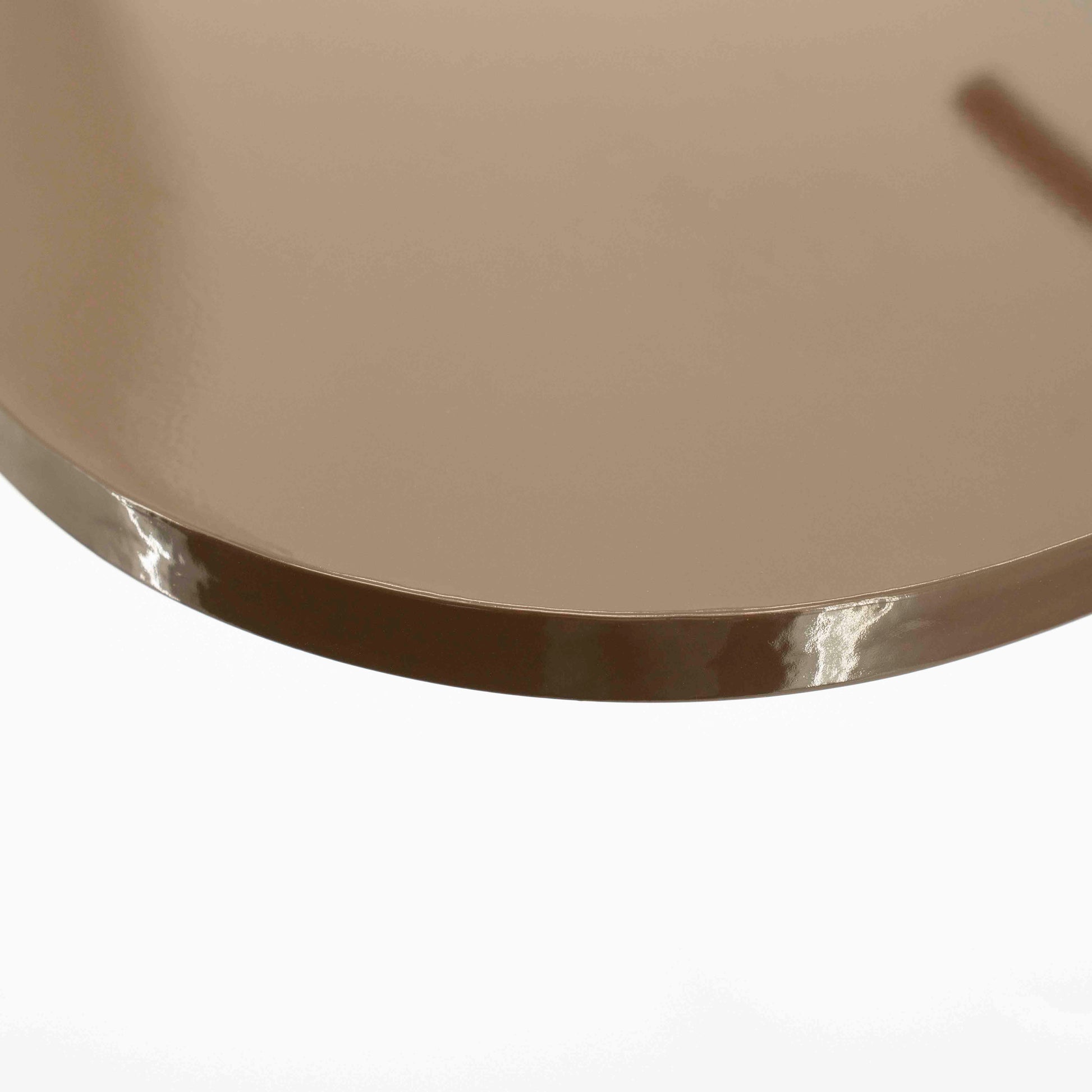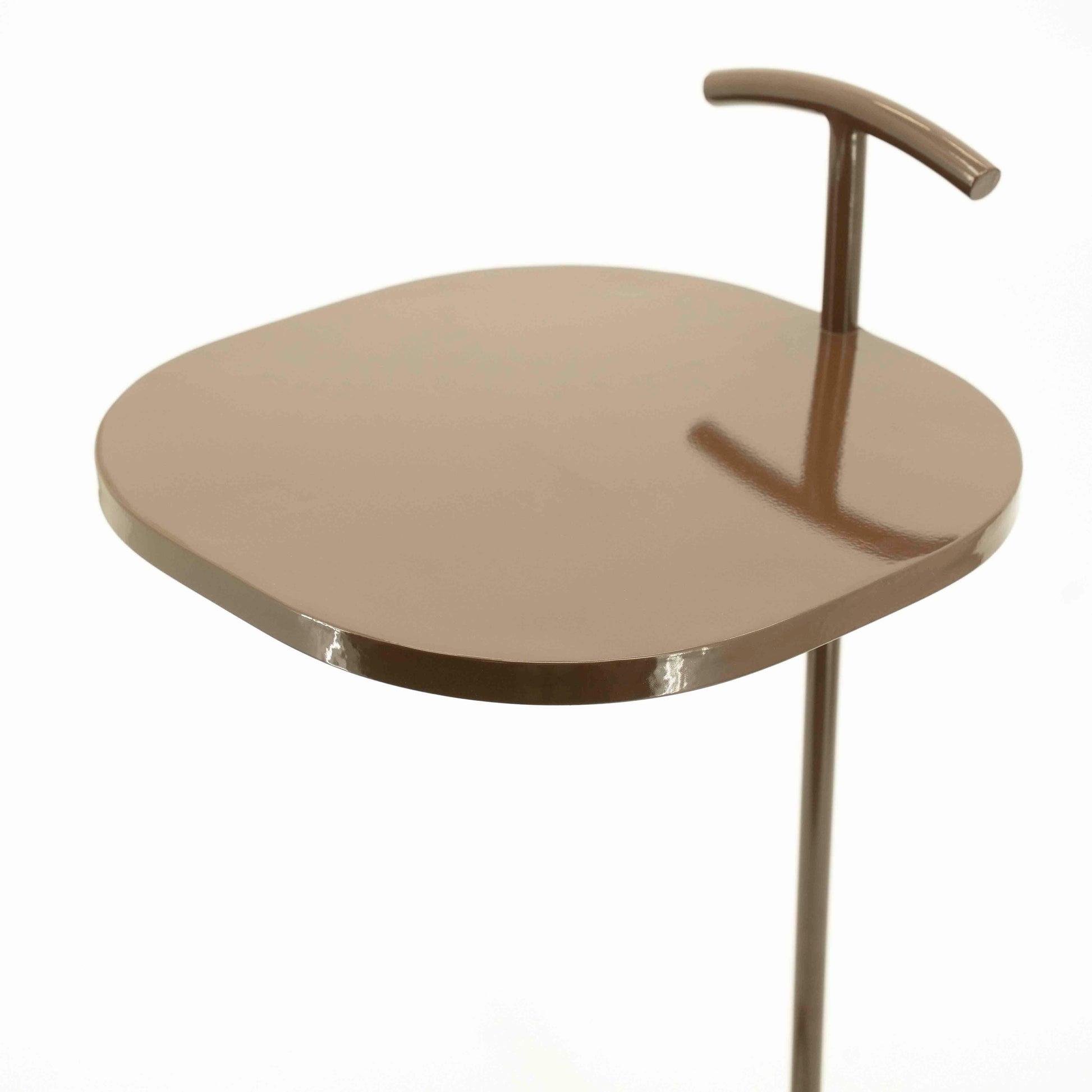 Et elegant og funksjonelt sidebord med et moderne, skulpturelt uttrykk. Bordet er laget i pulverlakkert metall med avrundede former og et praktisk håndtak som gjør det enkelt å flytte rundt. Den lette konstruksjonen og det minimalistiske designet gjør bordet perfekt som avlastningsbord ved sofaen, lenestolen eller sengen.