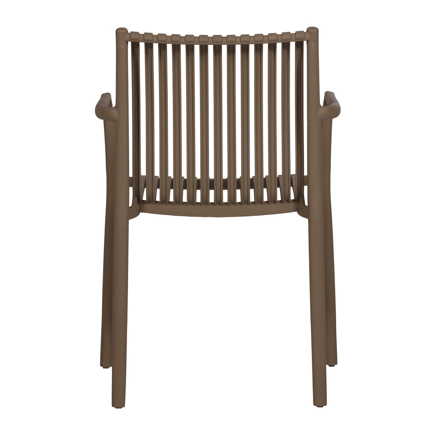 En minimalistisk og funksjonell hagestol med rene linjer og et tidløst uttrykk. Den varme mellombrune fargen tilfører uterommet en lun og harmonisk stemning, og gjør stolen enkel å kombinere med ulike utebord og møbler.