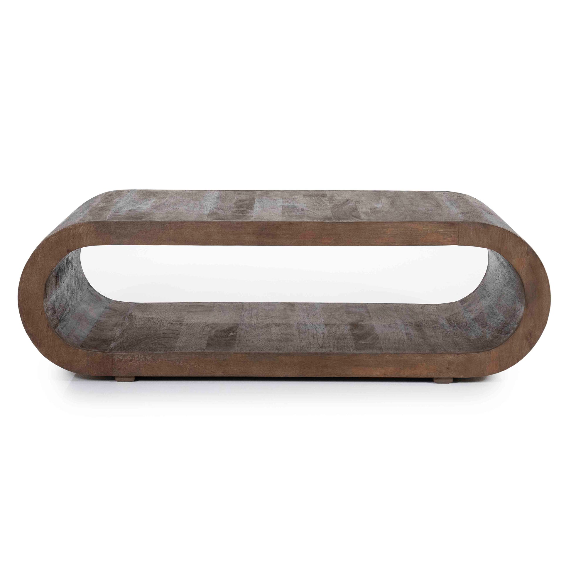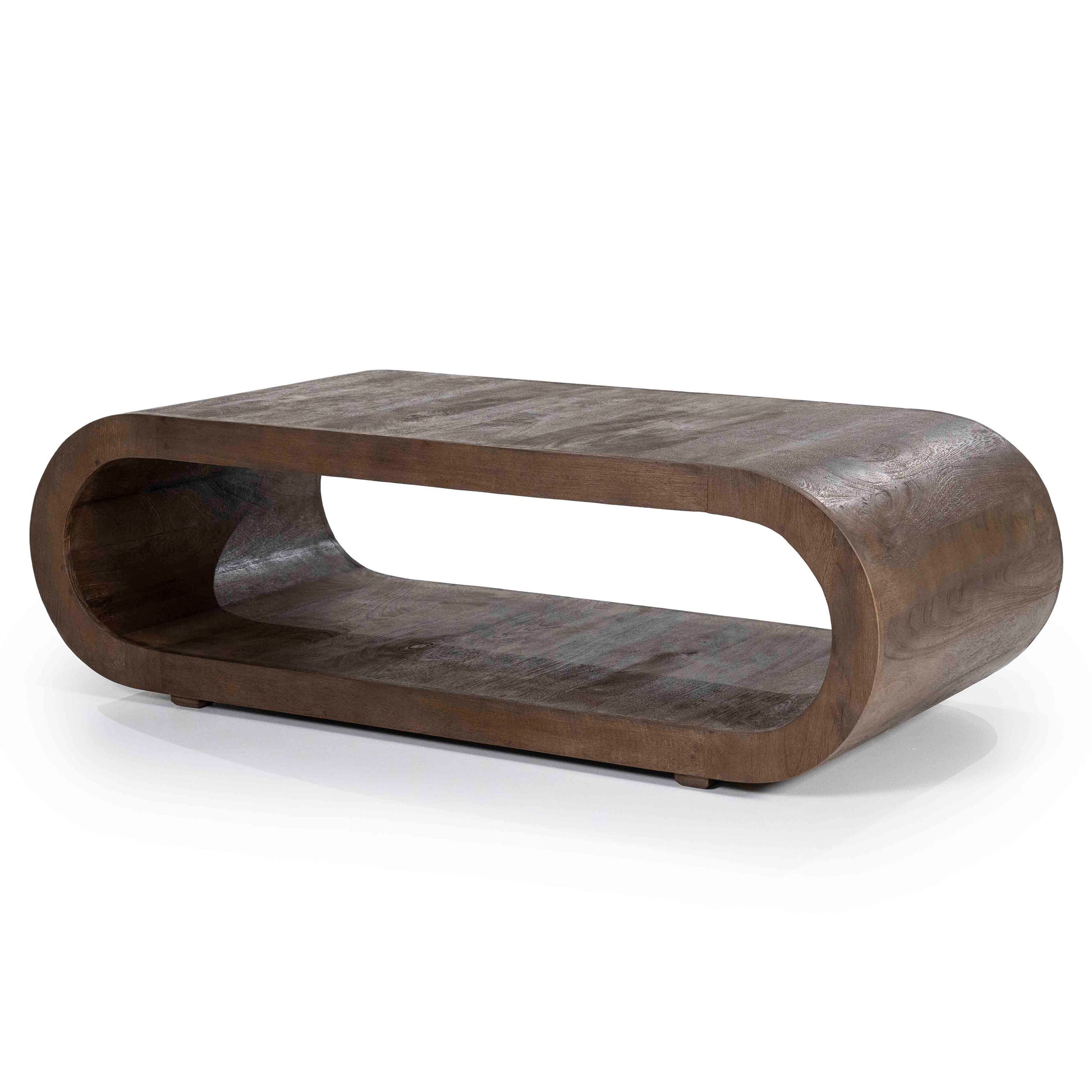 Et moderne sofabord med myke linjer og solid konstruksjon i massivt mørkt tre. Bordets åpne form gir et lett og luftig uttrykk, samtidig som det fremhever materialets naturlige tekstur. De avrundede hjørnene og den kontinuerlige silhuetten gir et harmonisk, organisk preg som passer både i moderne og klassiske interiør.