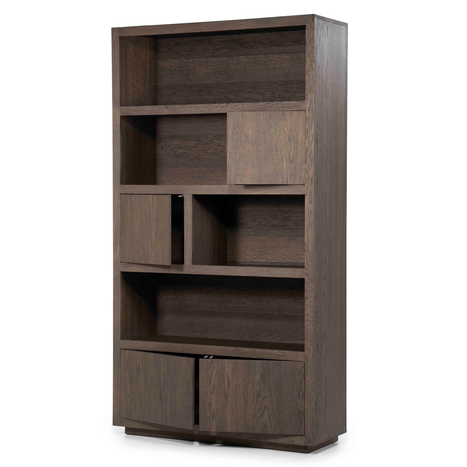 Den asymmetriske inndelingen skaper et spennende og balansert uttrykk, med åpne hyller for bøker, kunst og dekor, og to dører som skjuler praktisk oppbevaring. Bokhyllen er både funksjonell og dekorativ, og passer like godt i stuen som på kontoret eller i spisestuen.