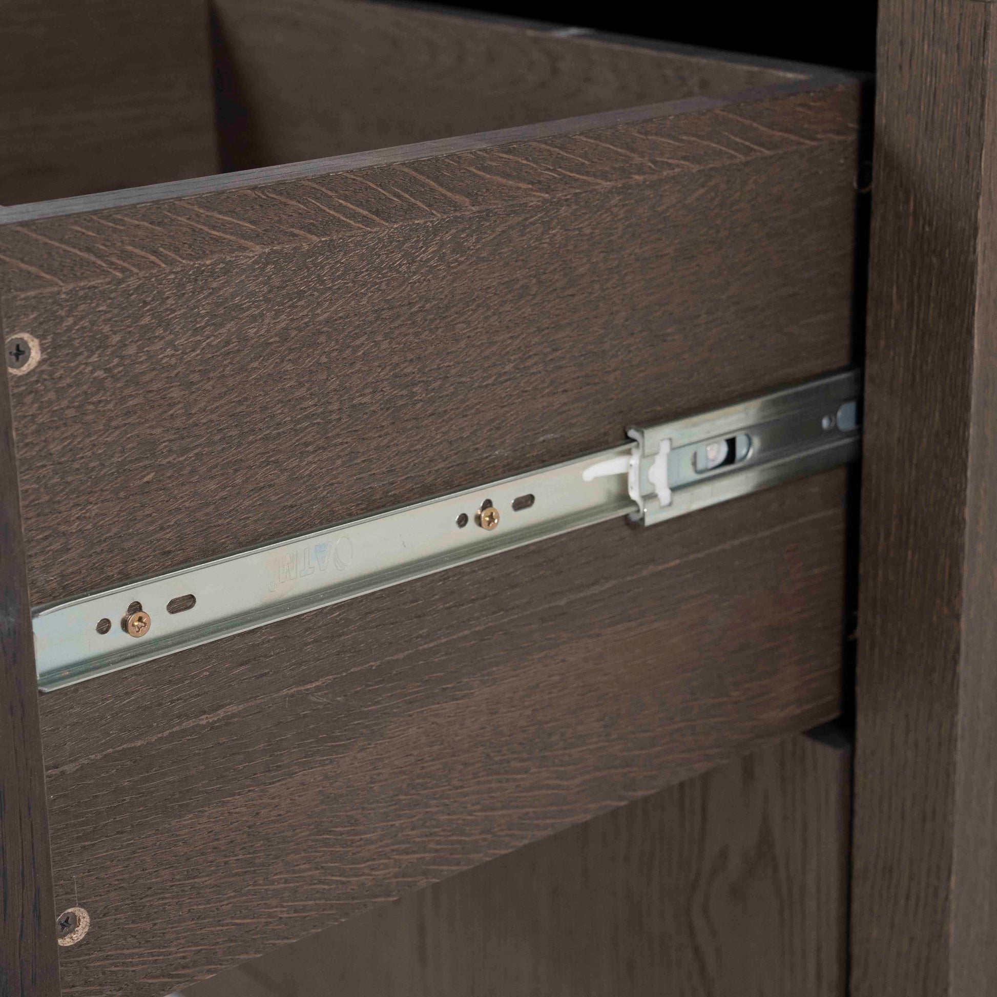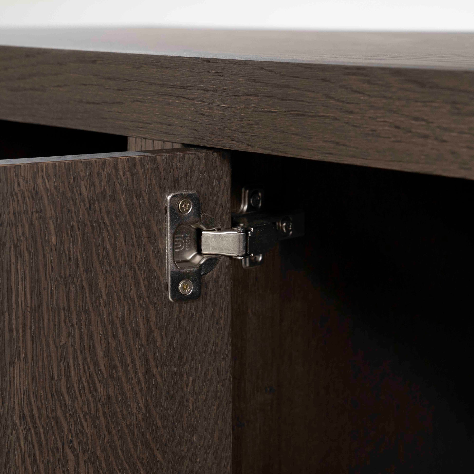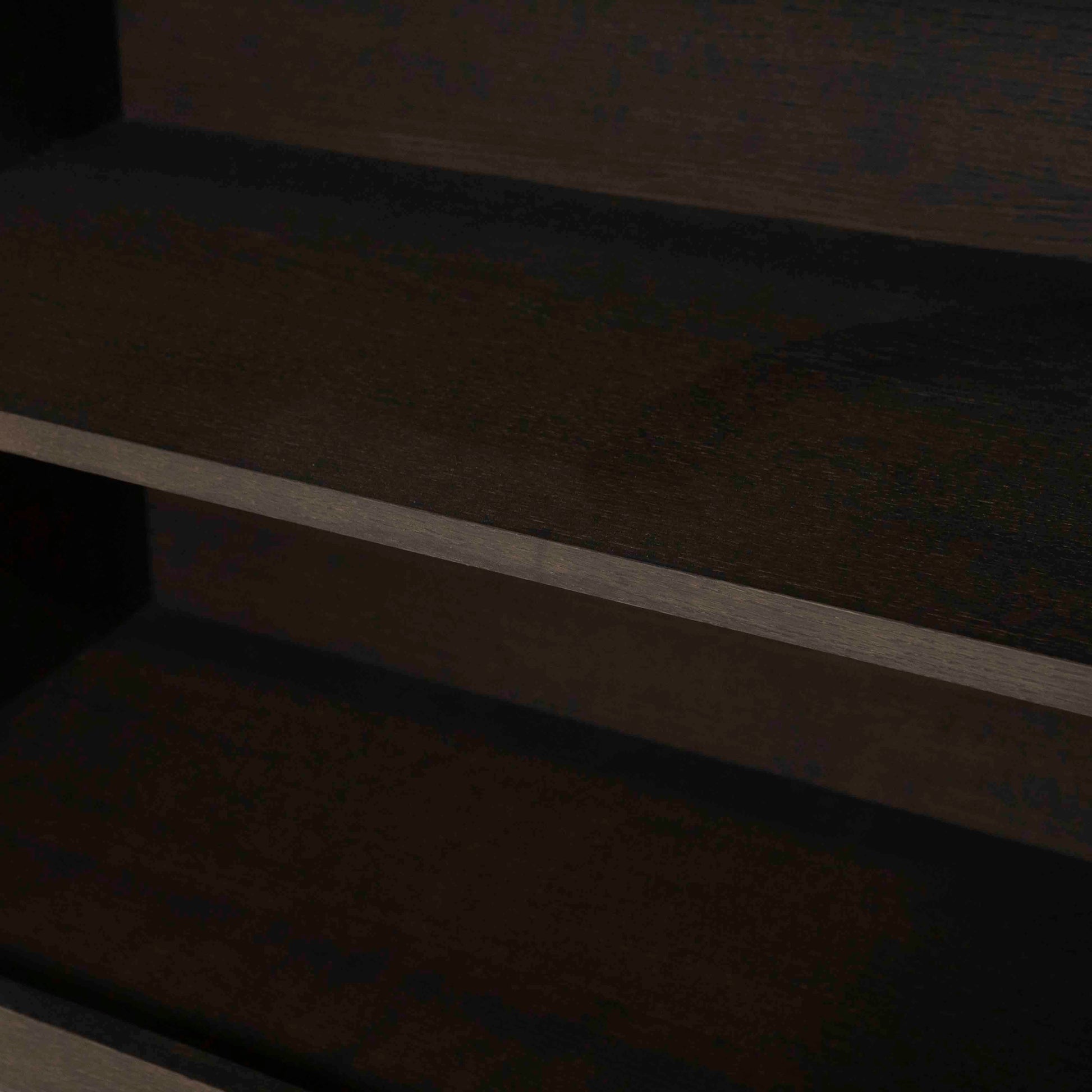 Denne skjenken kombinerer moderne minimalisme med tidløs eleganse. Utført i sort eikefinér, gir den et sofistikert uttrykk som passer perfekt i både moderne og klassiske interiører. Den mørke overflaten fremhever treets naturlige struktur og tilfører dybde og eksklusivitet til rommet.