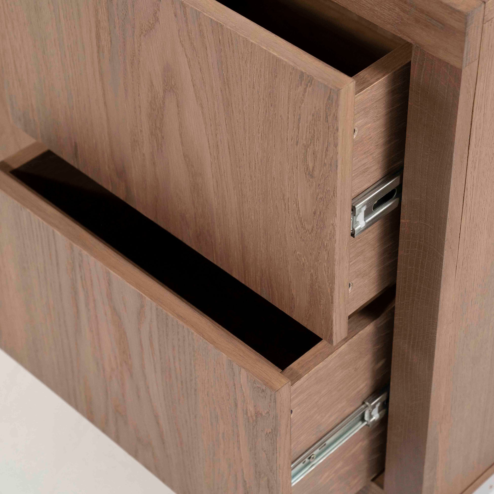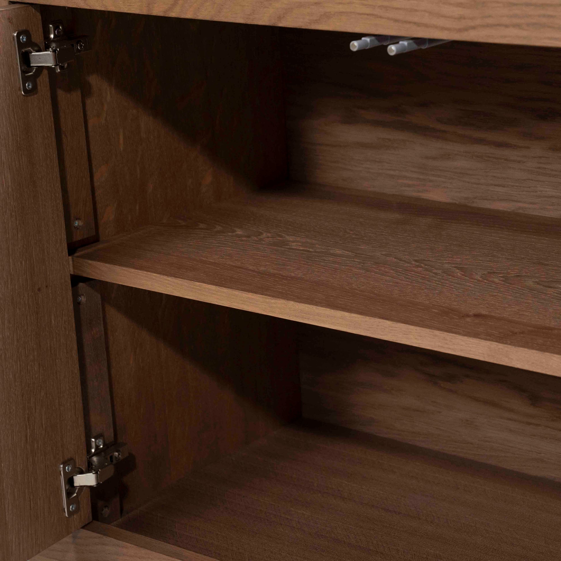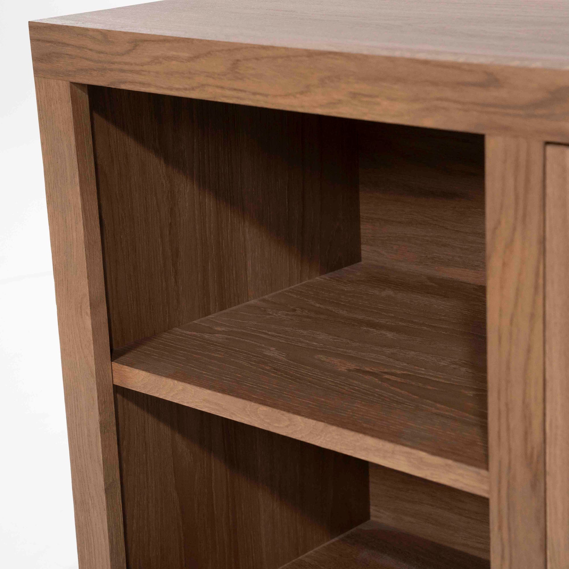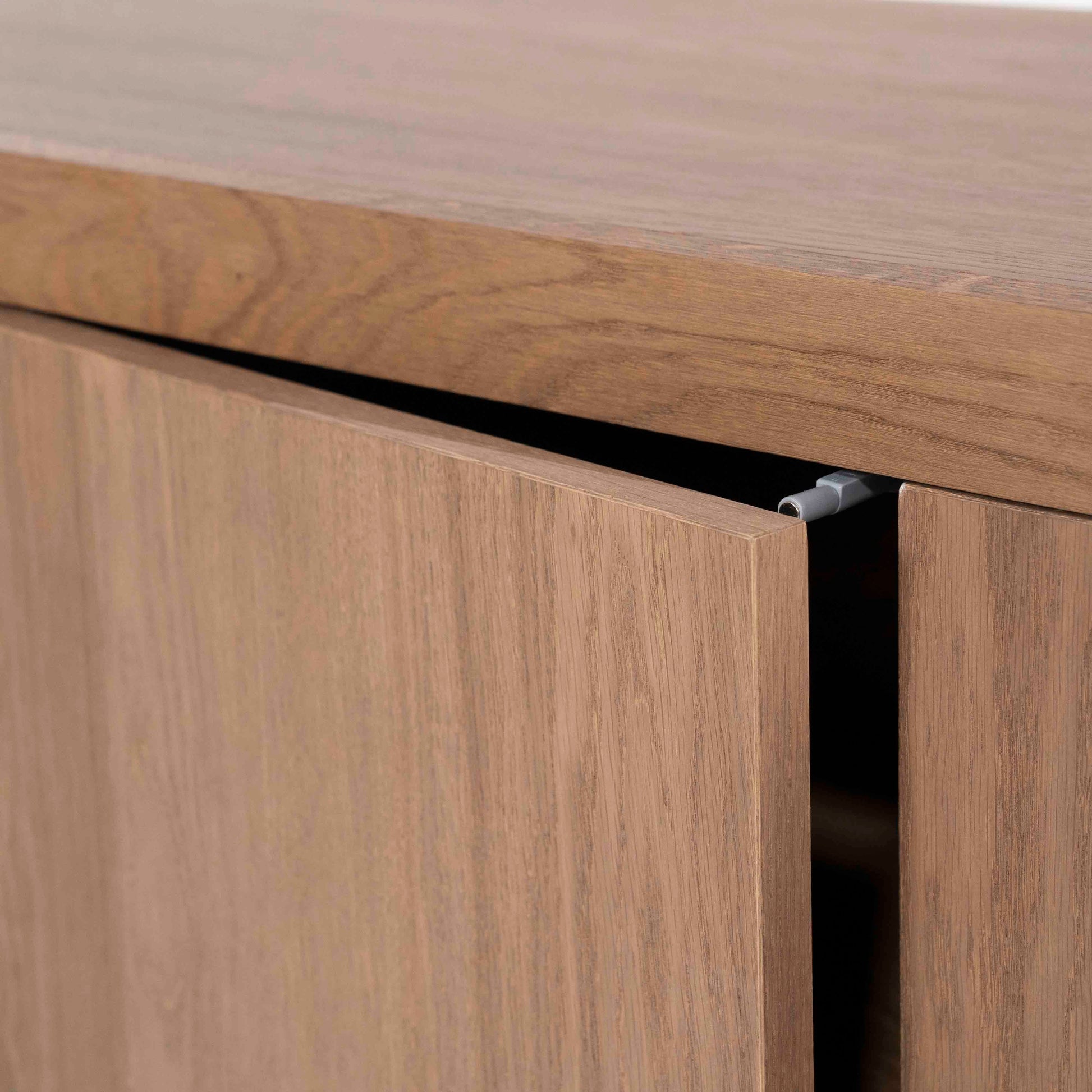 Gi stuen din et stilrent og harmonisk uttrykk med denne moderne TV-benken/skjenk i lyst treverk. Med sitt minimalistiske design og rene linjer passer den perfekt inn i både moderne og skandinaviske interiørstiler. Den solide konstruksjonen og den naturlige trestrukturen gir møbelet et eksklusivt og tidløst preg.