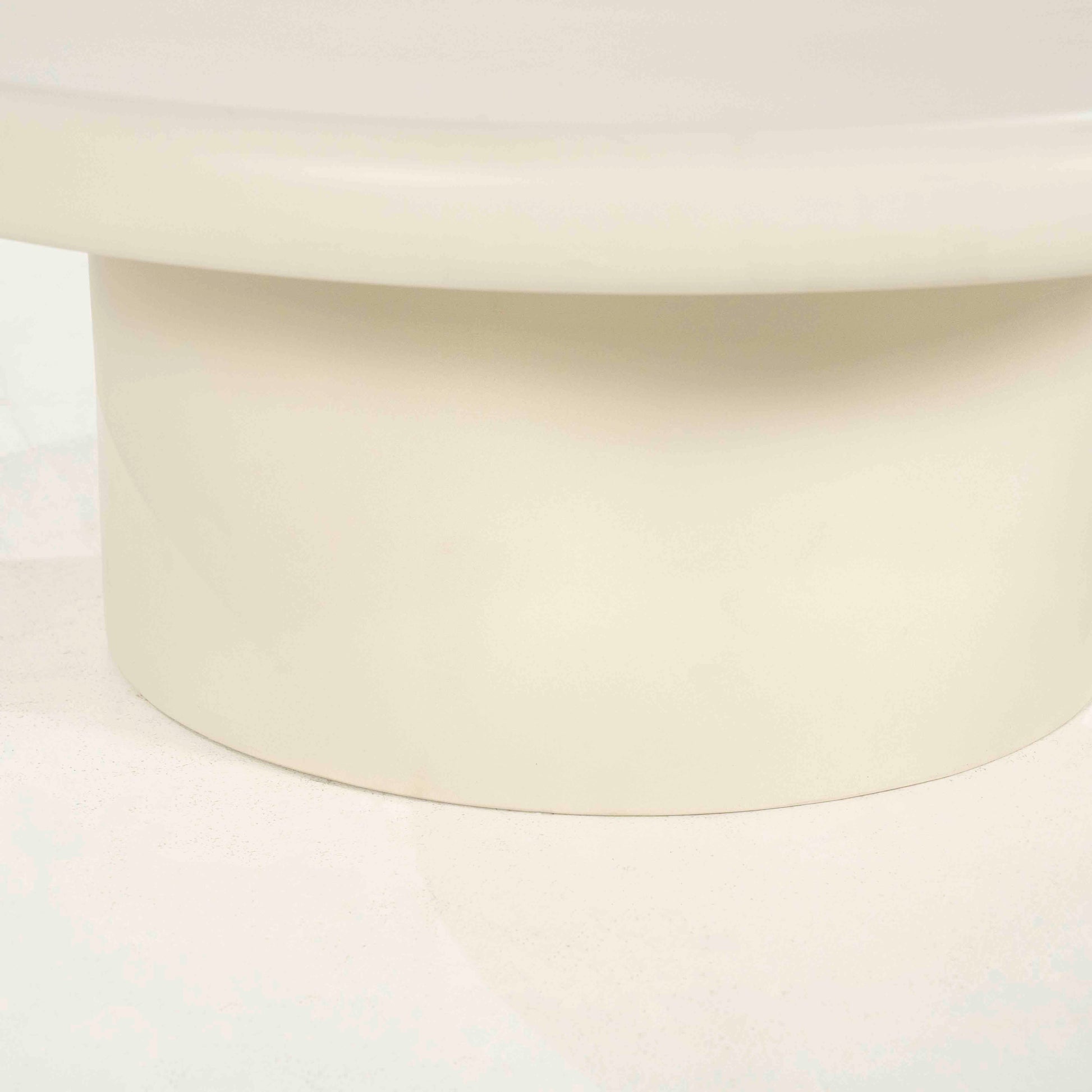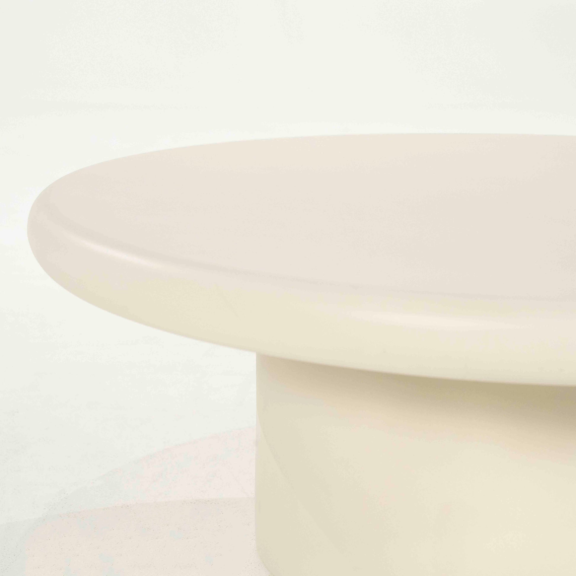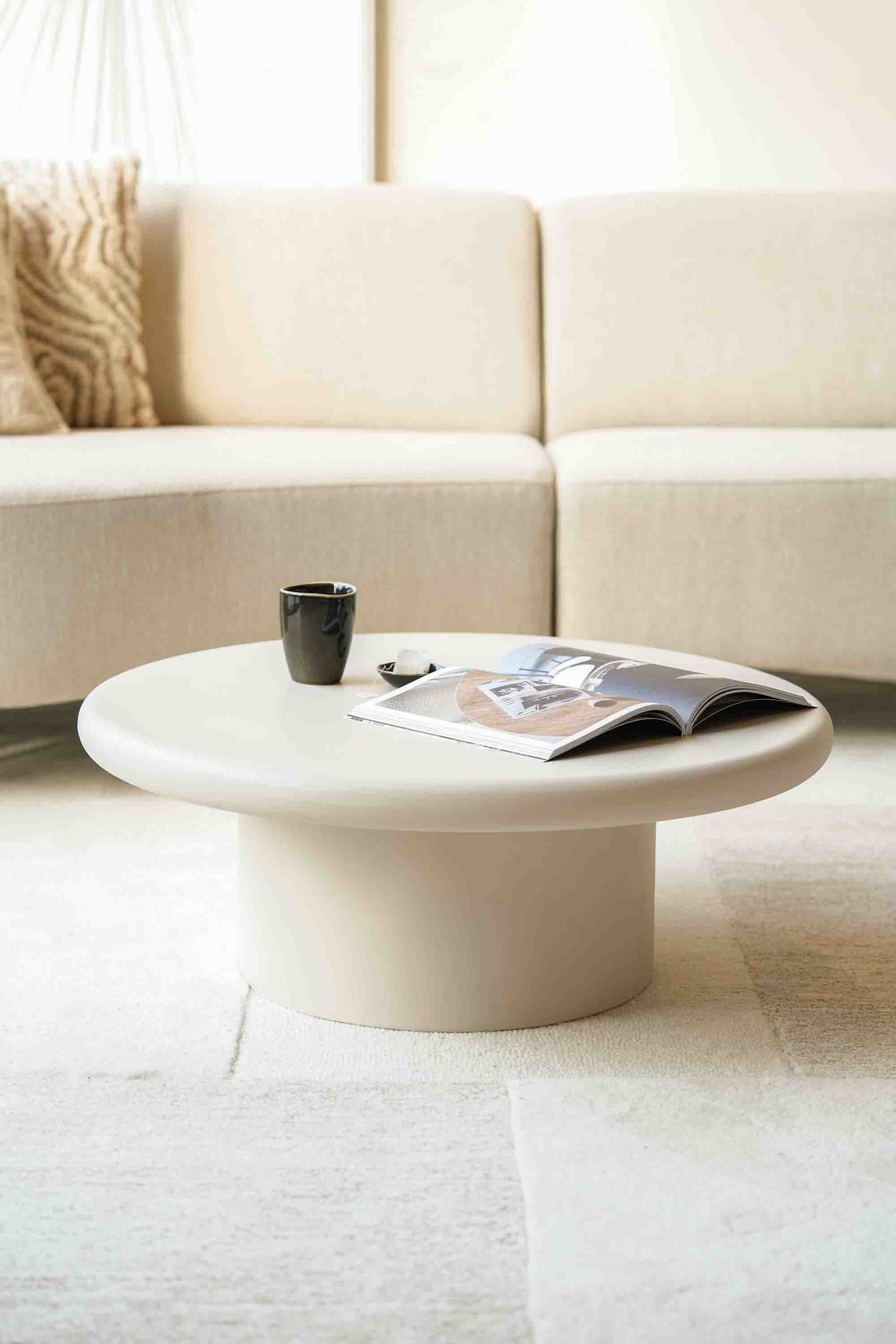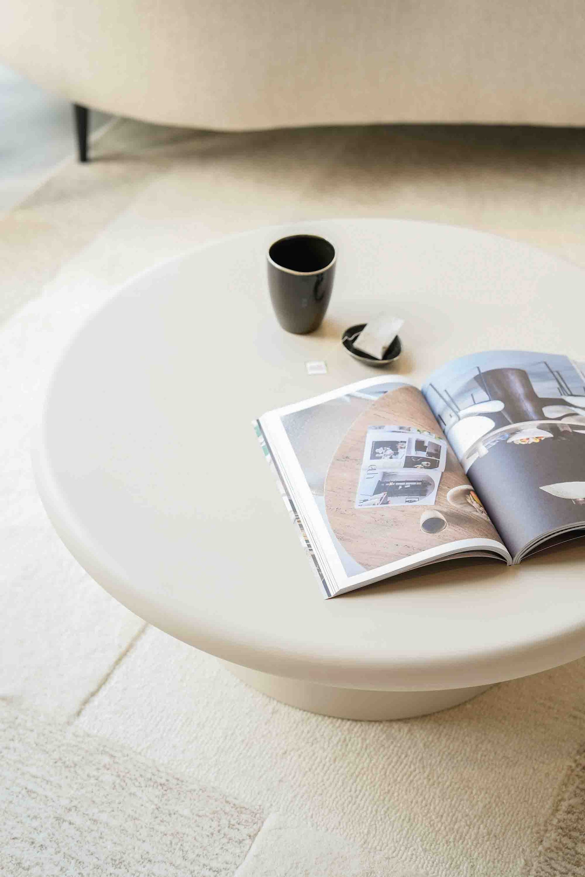 Et elegant bord med rene linjer og myke former. Den avrundede bordplaten hviler på en solid, sylinderformet sokkel som gir bordet et moderne og harmonisk uttrykk. Den kremfargede overflaten tilfører rommet et lyst og sofistikert preg – perfekt i kombinasjon med Jade sidebord.