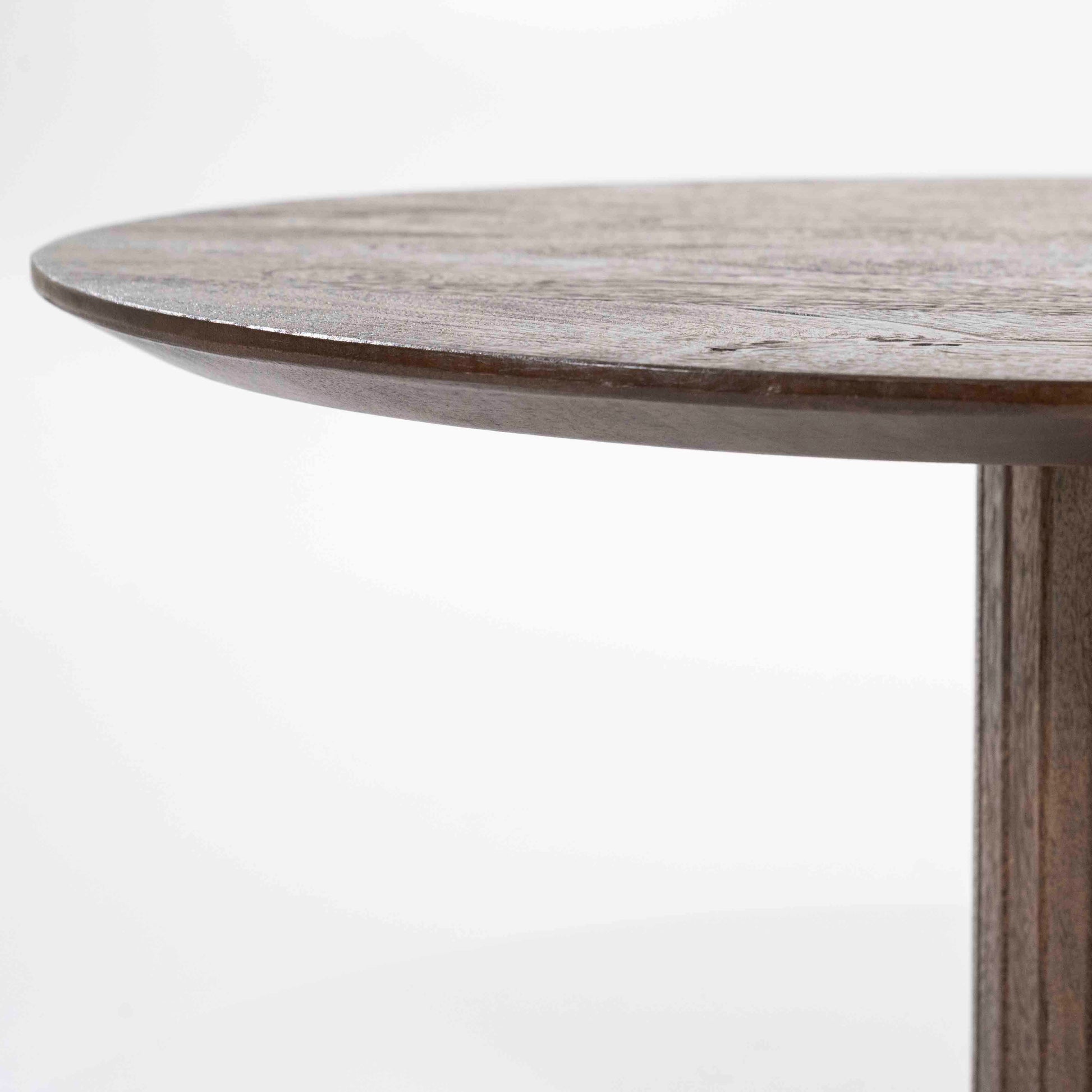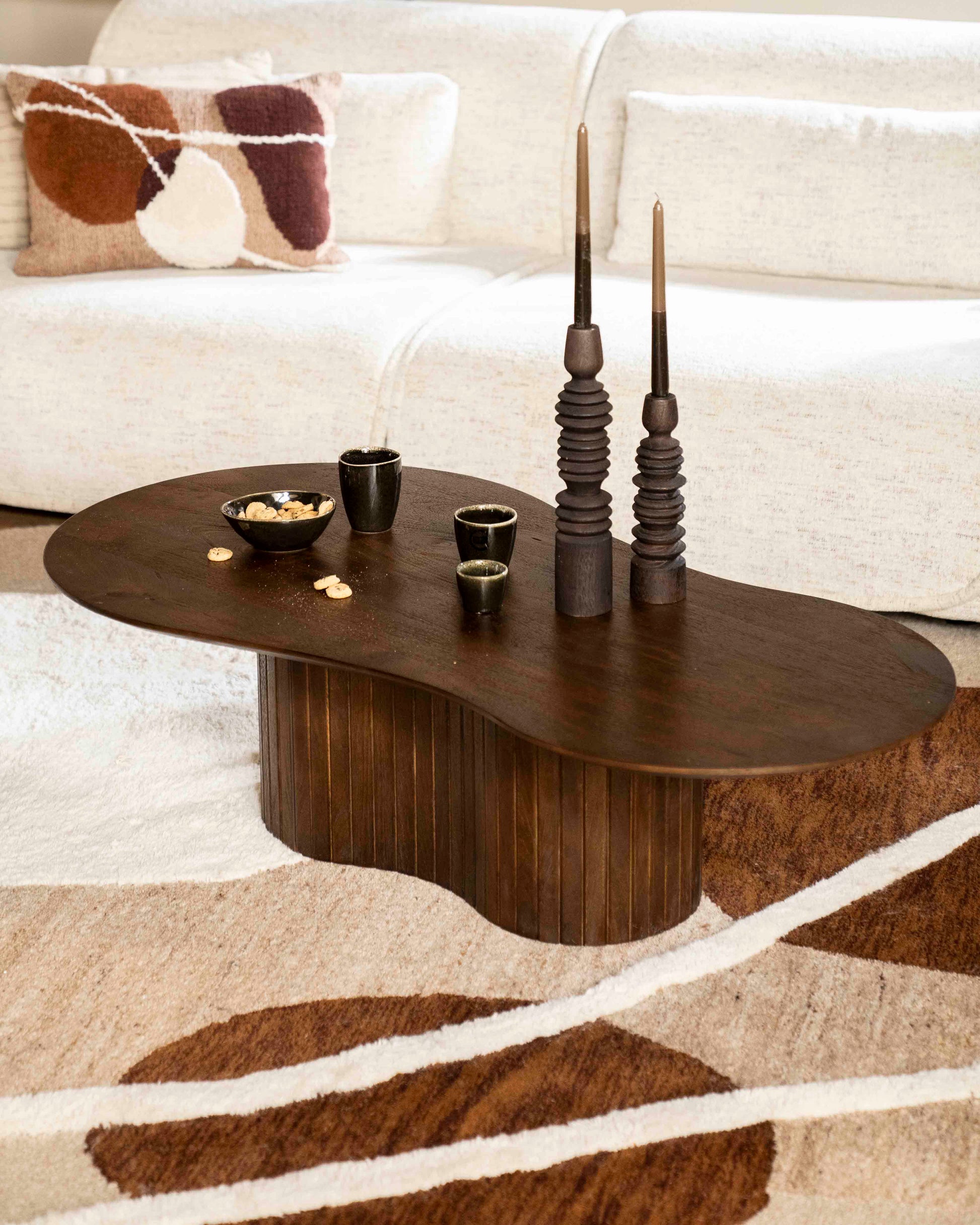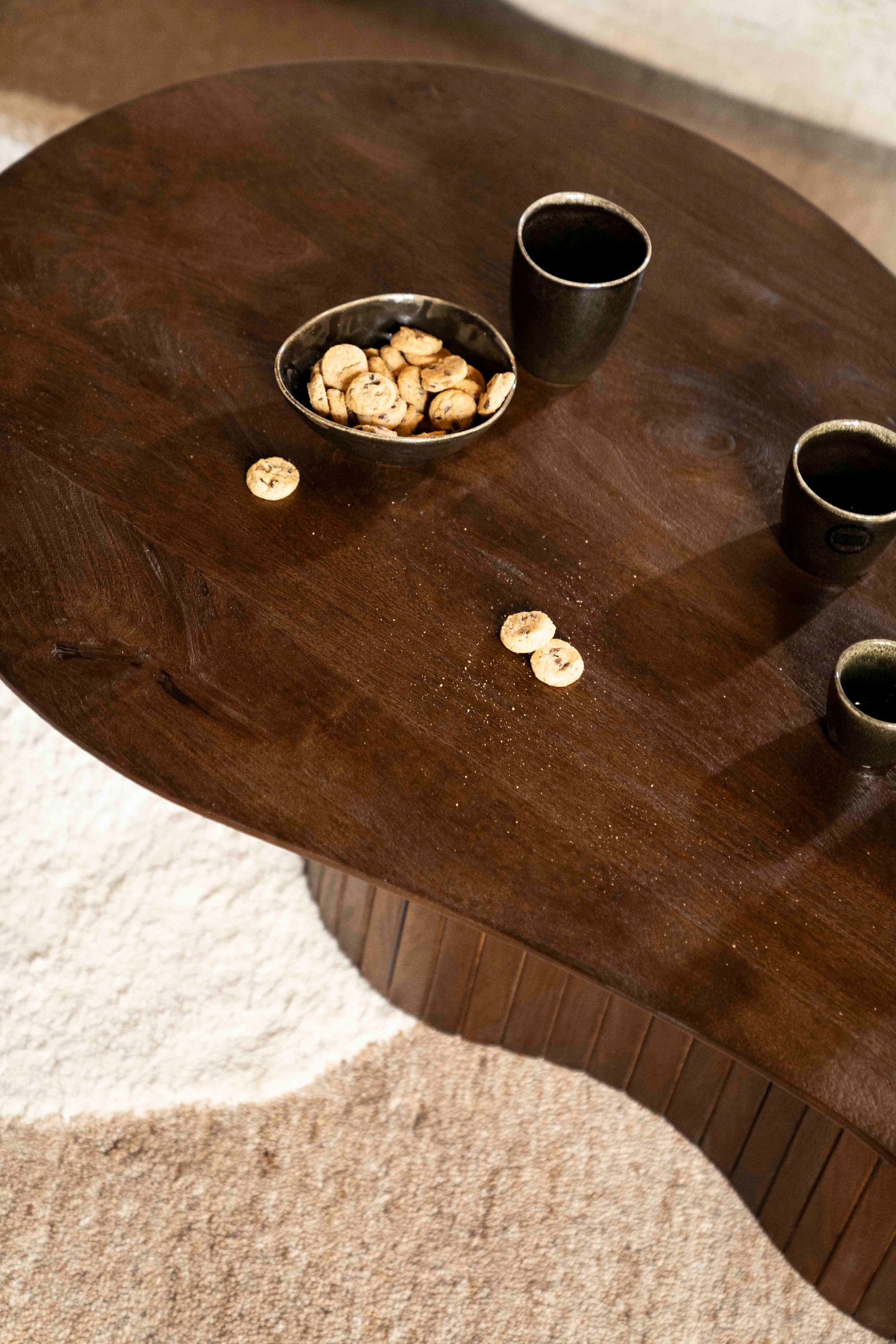 Det mørkbeisede treverket gir et varmt og tidløst preg, samtidig som den unike formen gjør bordet til et blikkfang i stuen. Et perfekt samspill mellom funksjon og design – harmonisk, men med særpreg.
