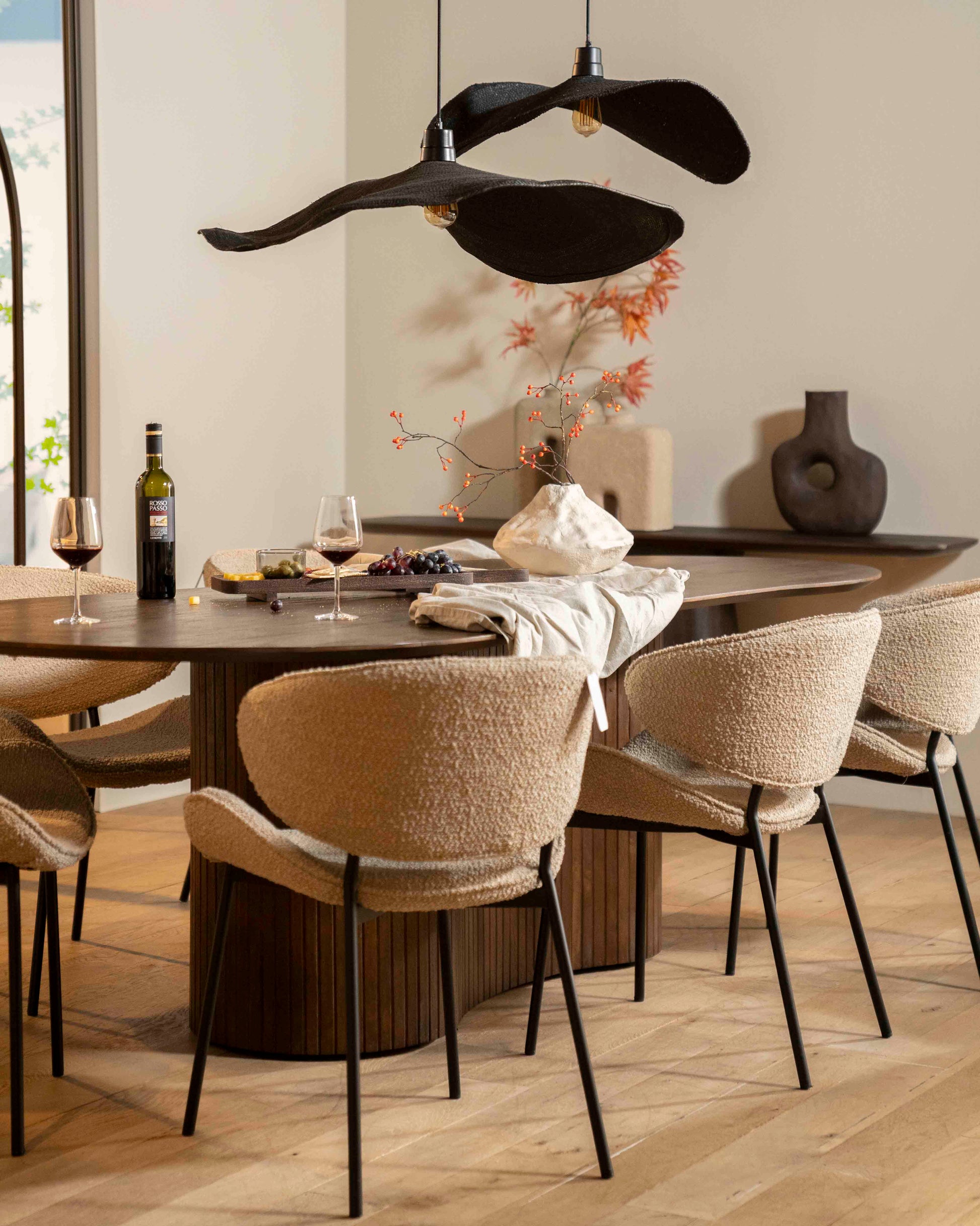 Den myke, ovale formen gir et harmonisk uttrykk og skaper en behagelig flyt i rommet, samtidig som den gir god plass til familie og gjester. Perfekt for deg som ønsker et sofistikert og tidløst midtpunkt i spisestuen.