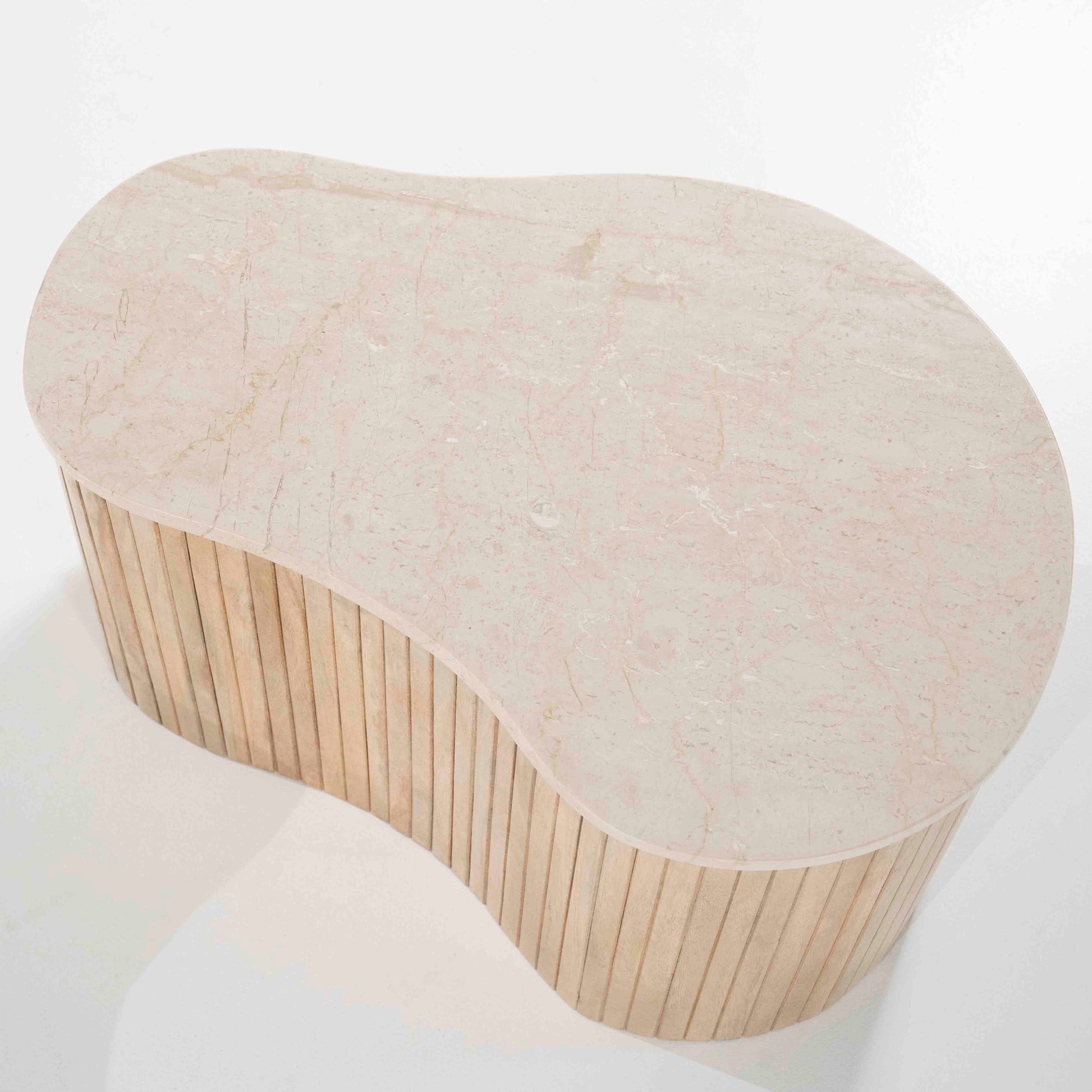 Et lavt og elegant sofabord med myke, avrundede former inspirert av naturens organiske linjer.