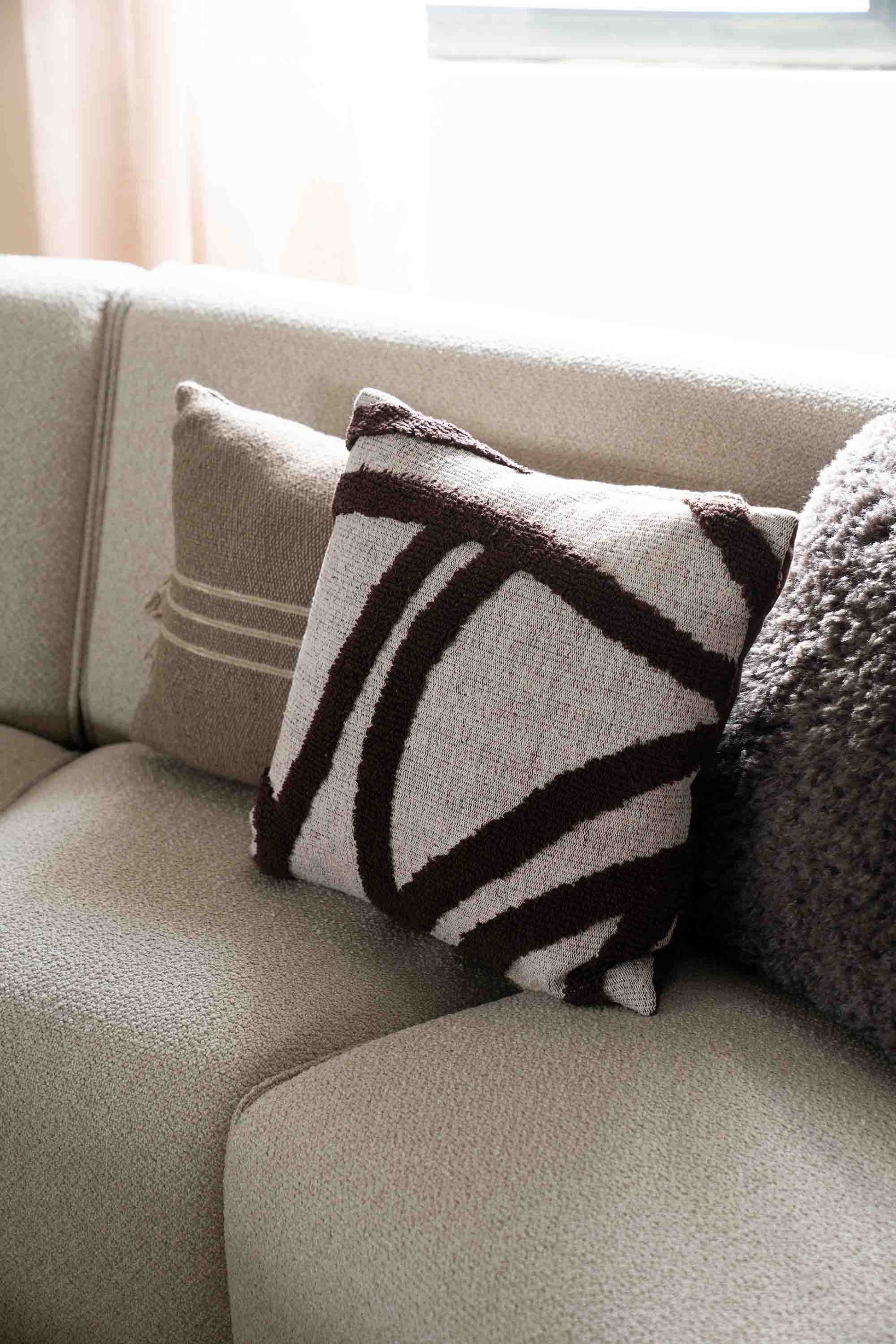 Med sin praktiske størrelse på 45 × 45 cm passer puten perfekt i moderne interiører og kan enkelt kombineres med andre tekstiler for et gjennomført og harmonisk uttrykk.