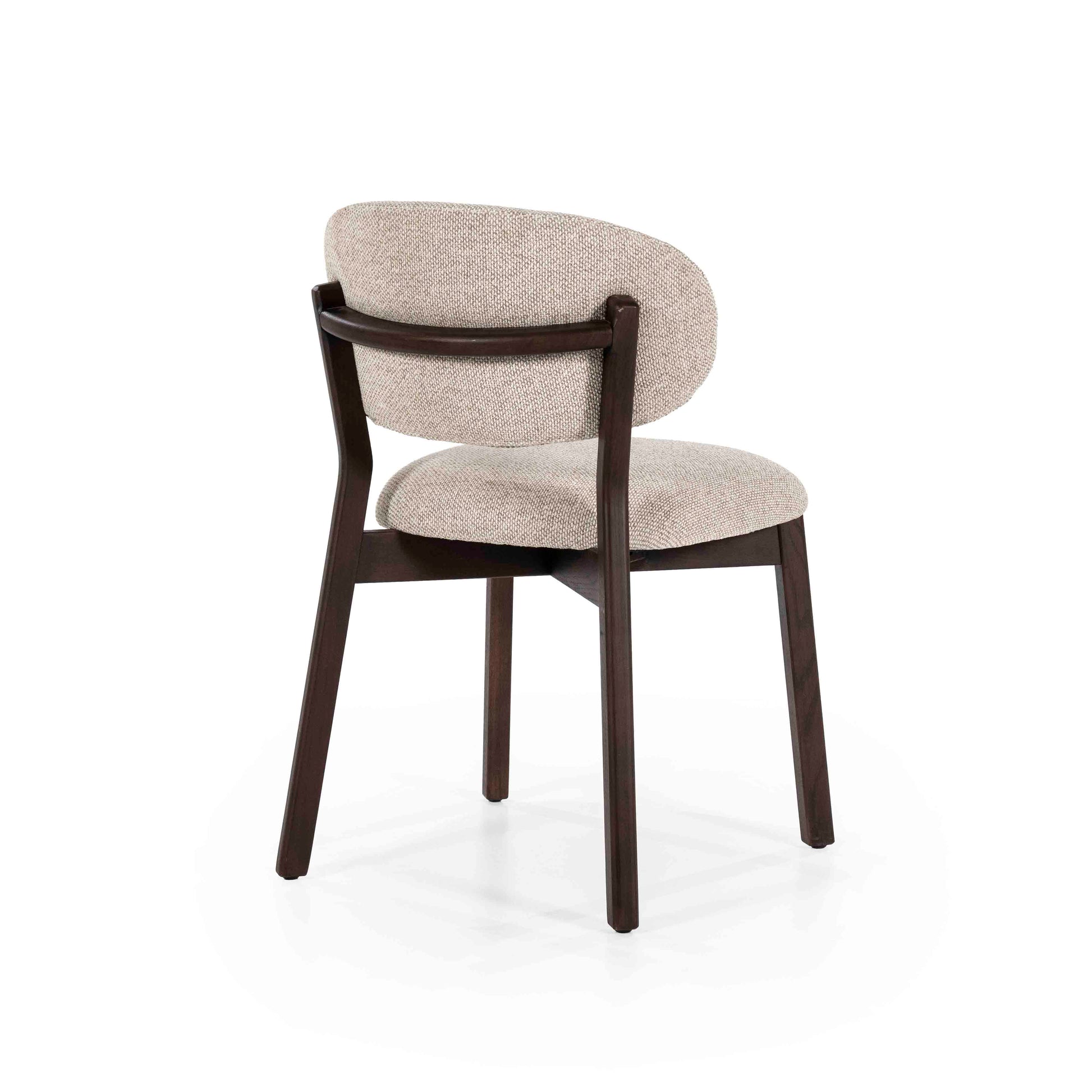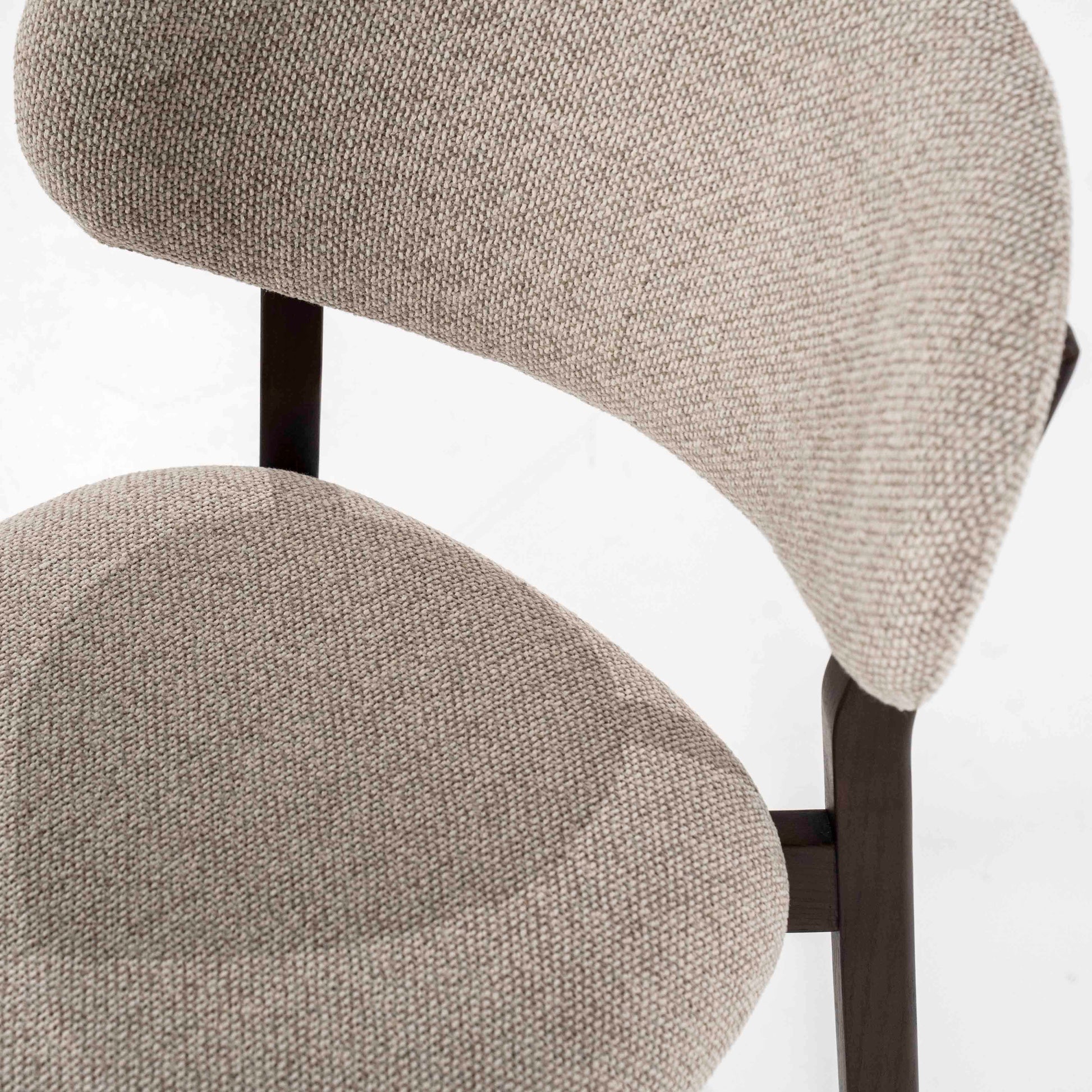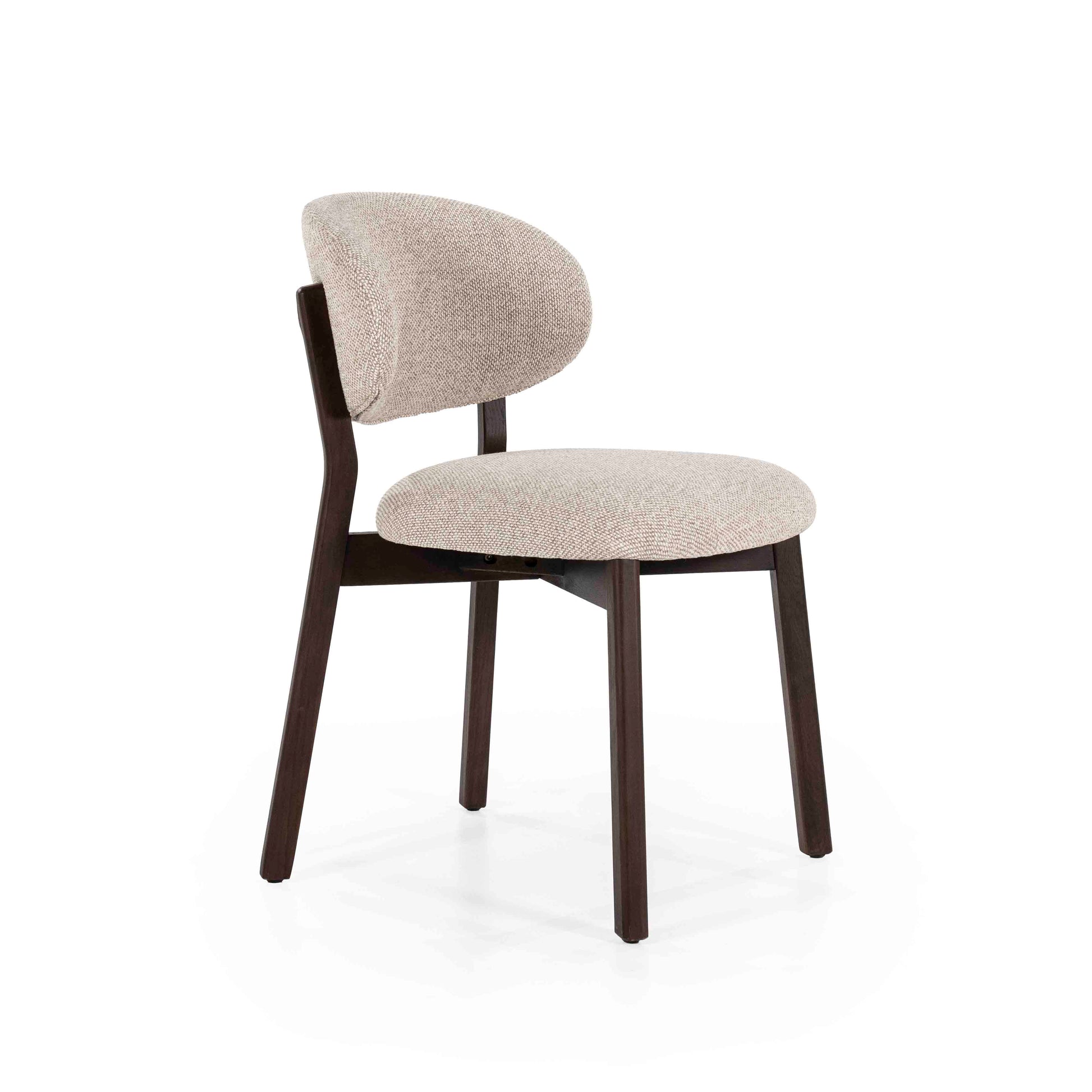 Denne stilrene spisestolen kombinerer nordisk enkelhet med høy komfort. Det solide understellet i mørkt tre gir et elegant og stilrent uttrykk, mens det myke, polstrede setet og den avrundede ryggen sørger for behagelig støtte under lange måltider.