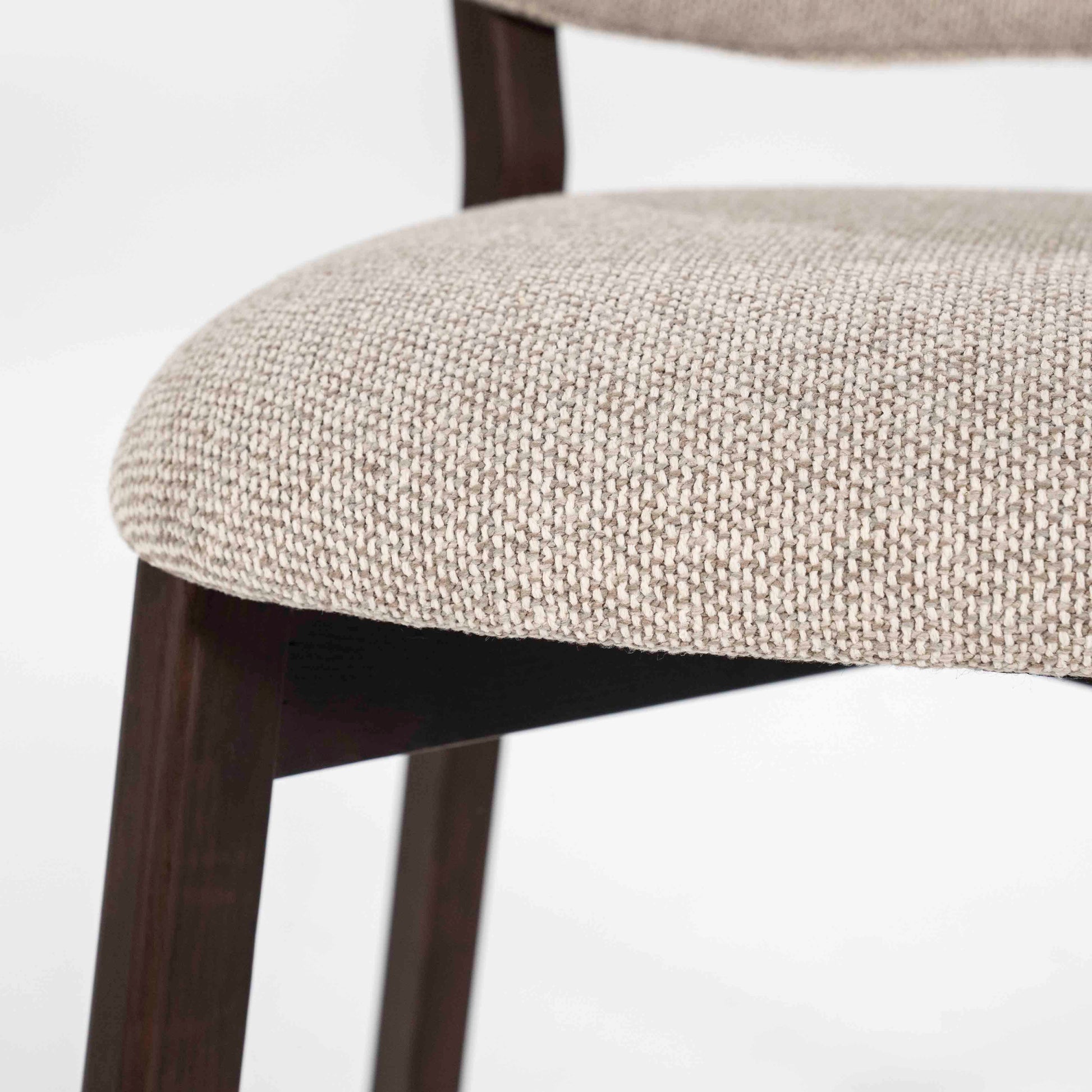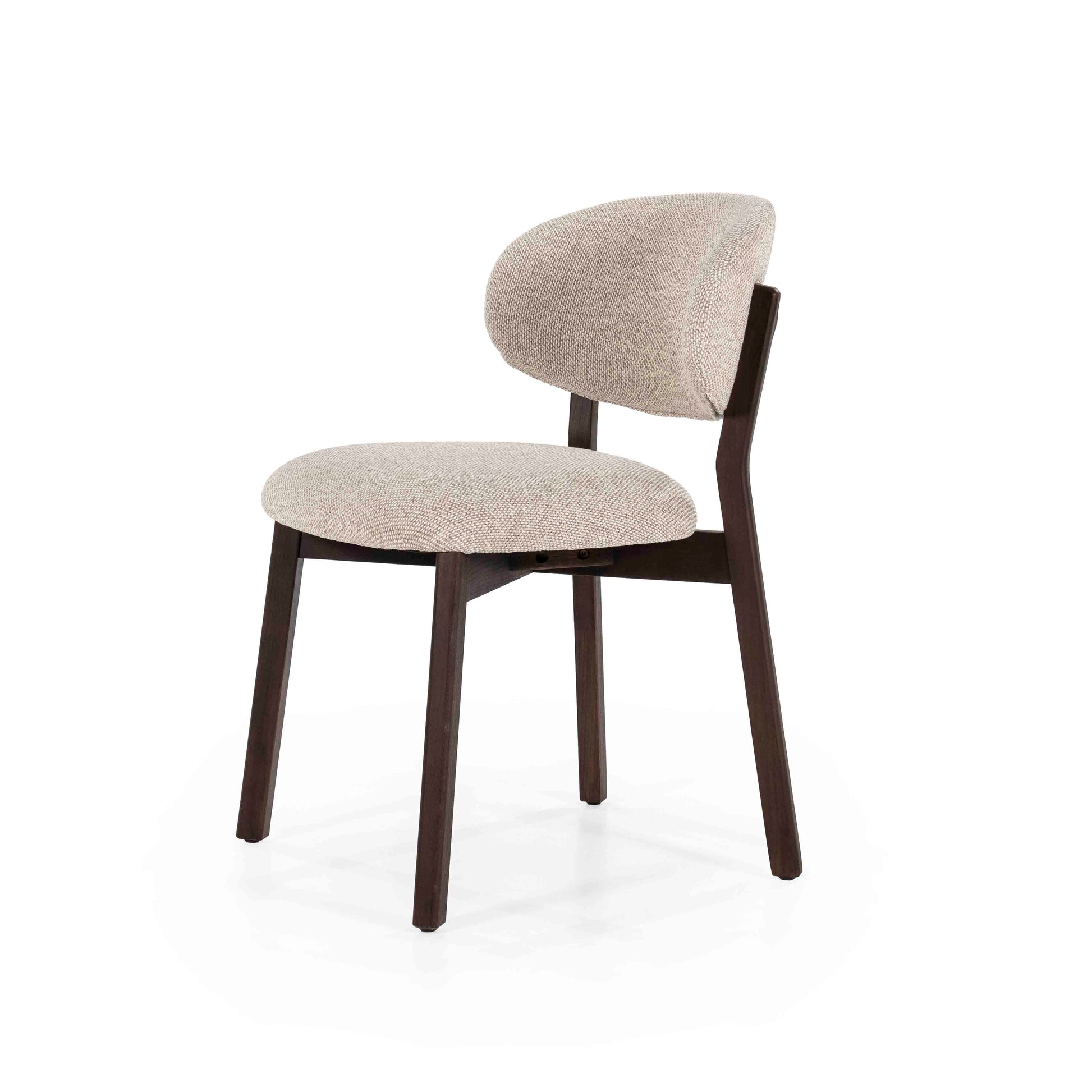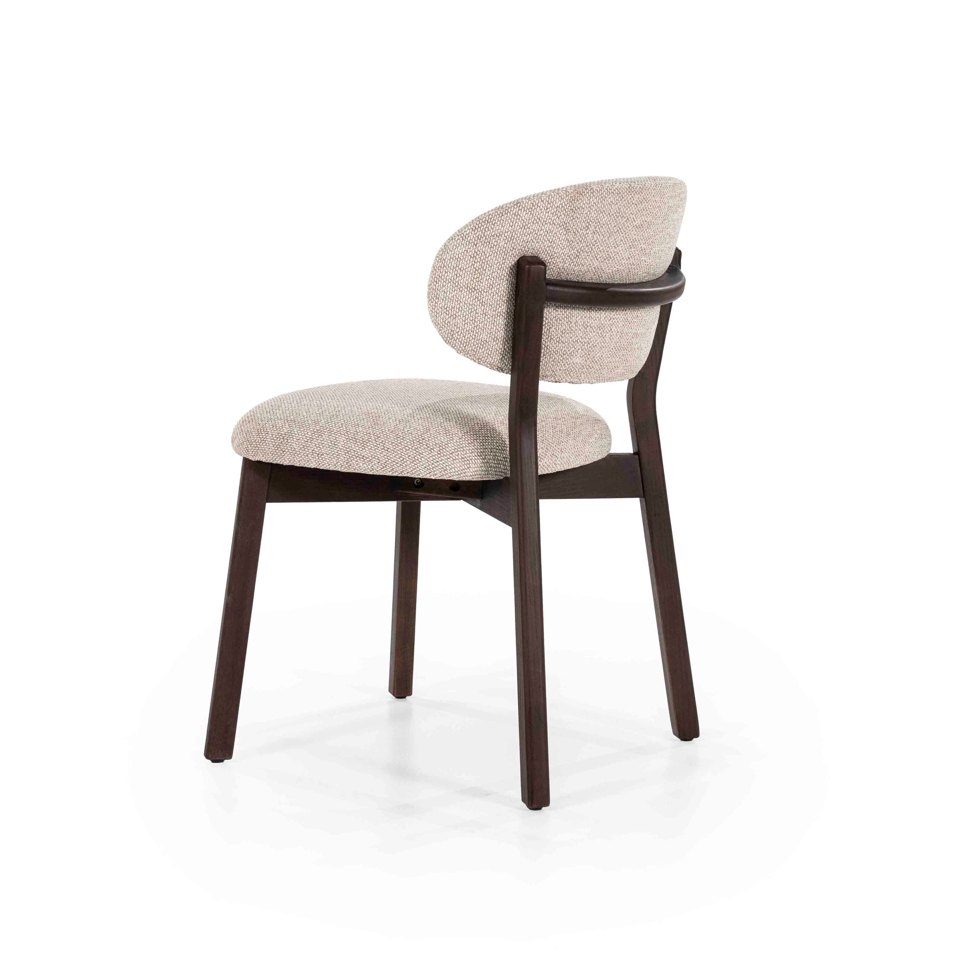 Denne stilrene spisestolen kombinerer nordisk enkelhet med høy komfort. Det solide understellet i mørkt tre gir et elegant og stilrent uttrykk, mens det myke, polstrede setet og den avrundede ryggen sørger for behagelig støtte under lange måltider.