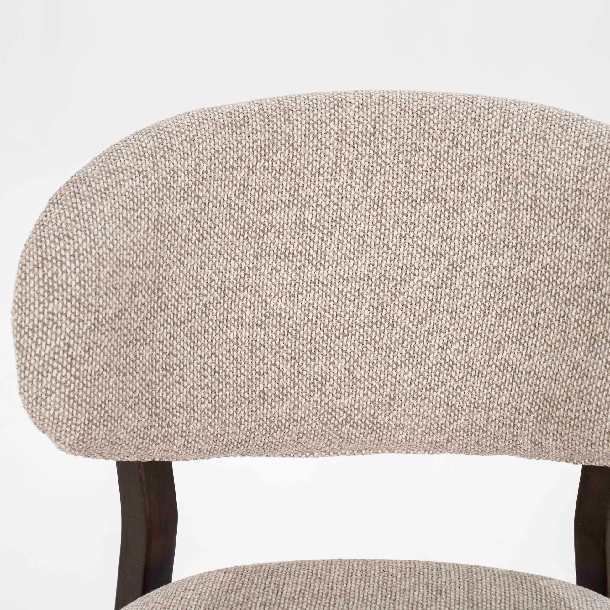 Det nøytrale stoffet i beige gjør stolen lett å kombinere med ulike spisebord og interiørstiler – fra moderne til klassisk.