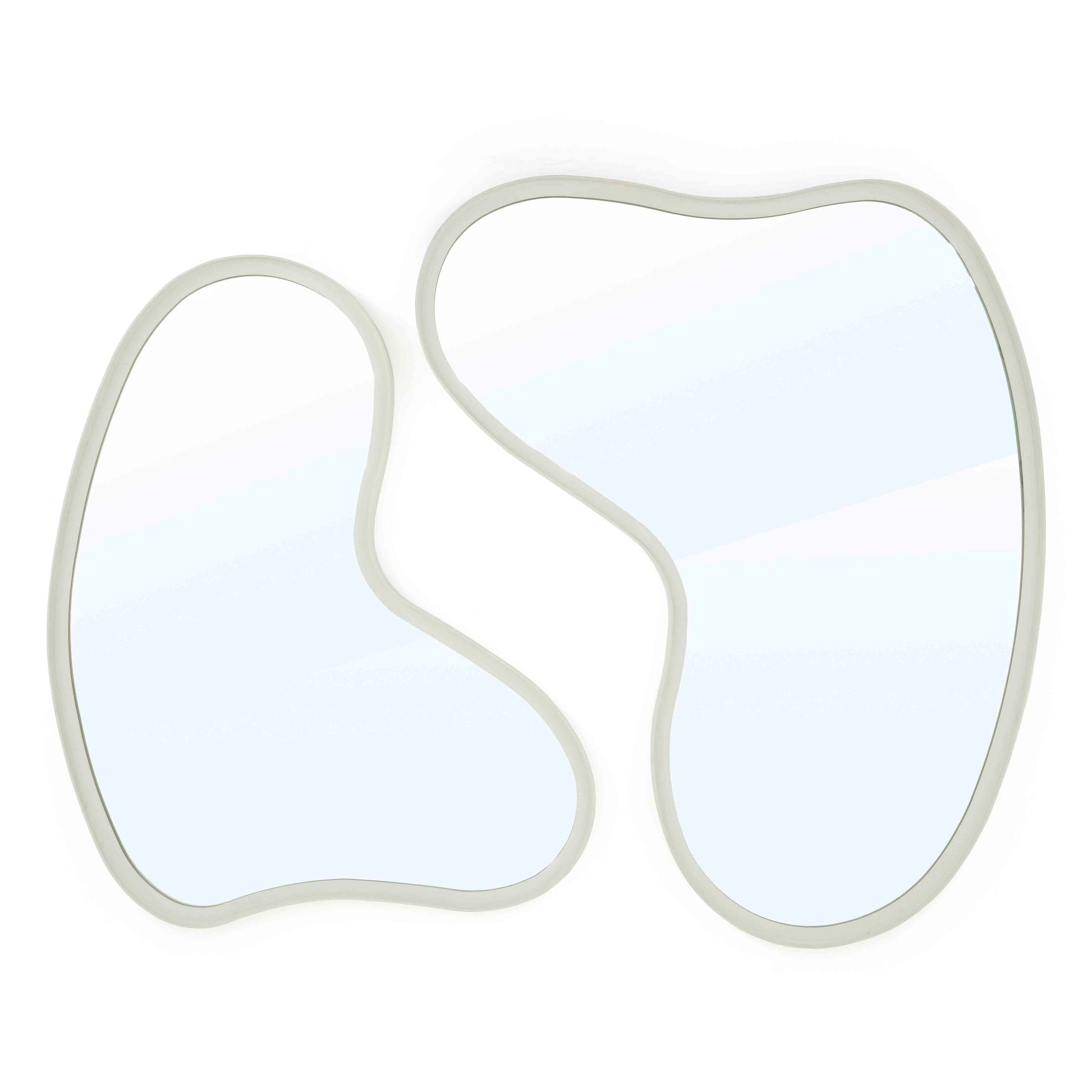 Dette settet med to speil i organiske former gir hjemmet et moderne og kunstnerisk preg. De myke, asymmetriske linjene skaper et dynamisk uttrykk som passer perfekt i både stue, gang eller soverom. Speilene kan henges sammen som et par for en spennende veggkomposisjon, eller brukes hver for seg for å tilføre rommet lys og dybde.