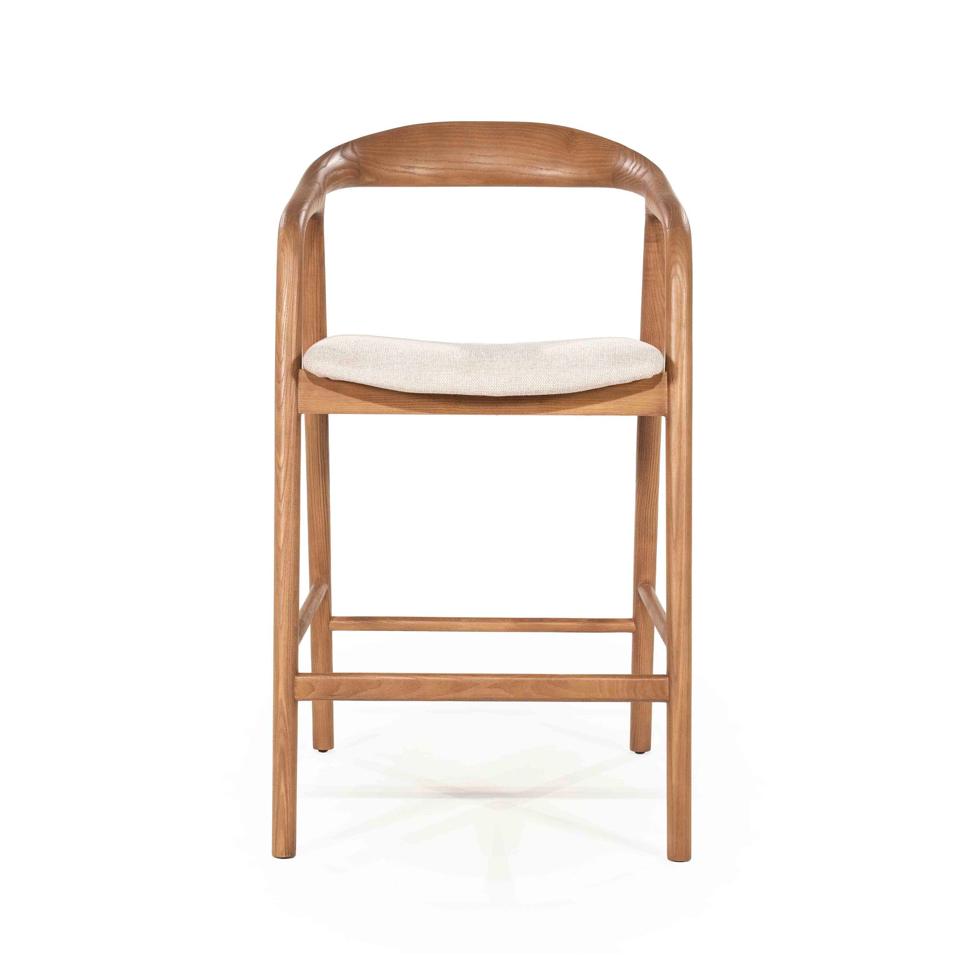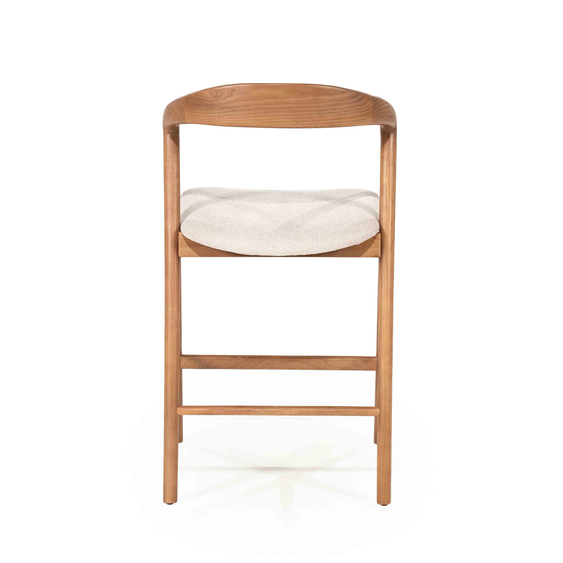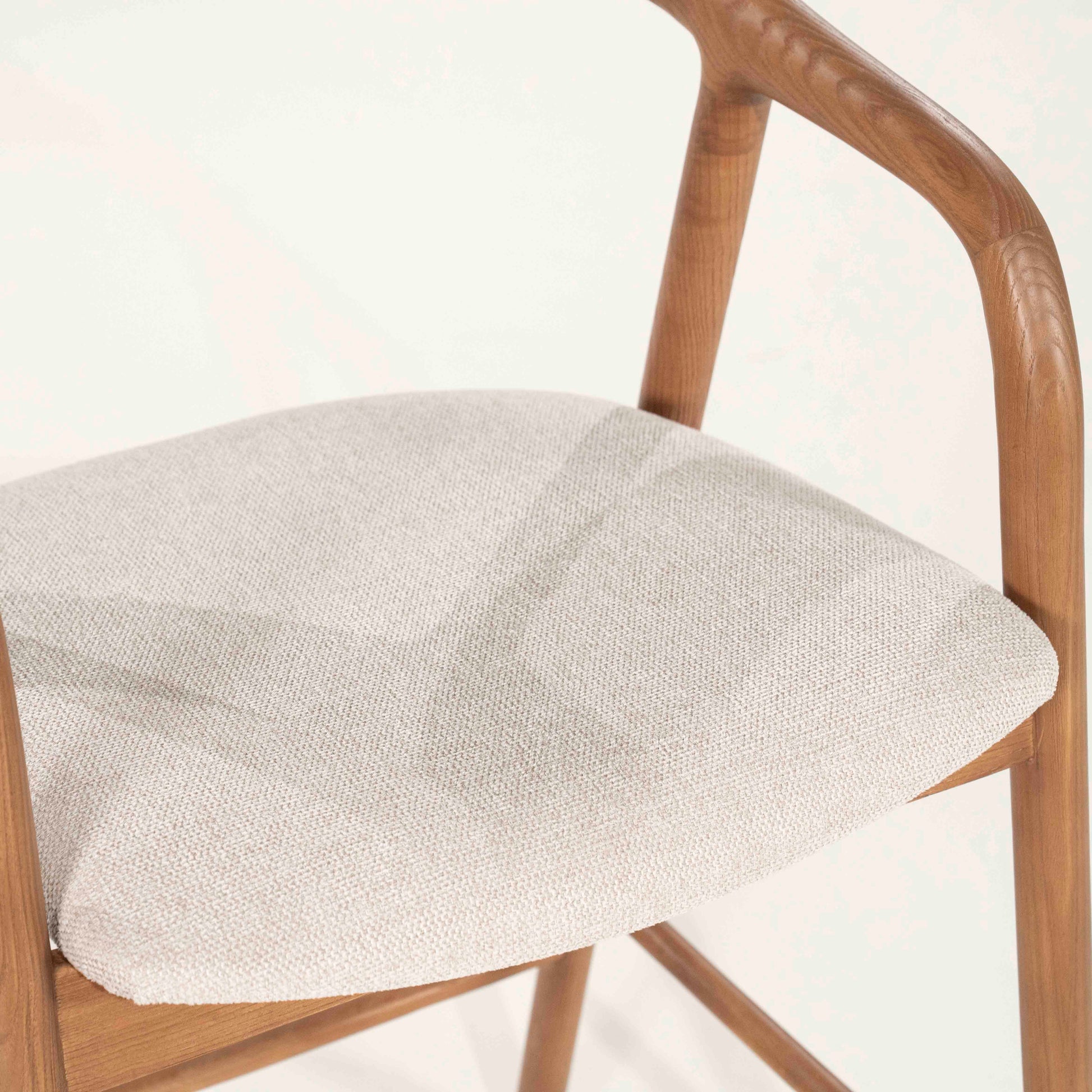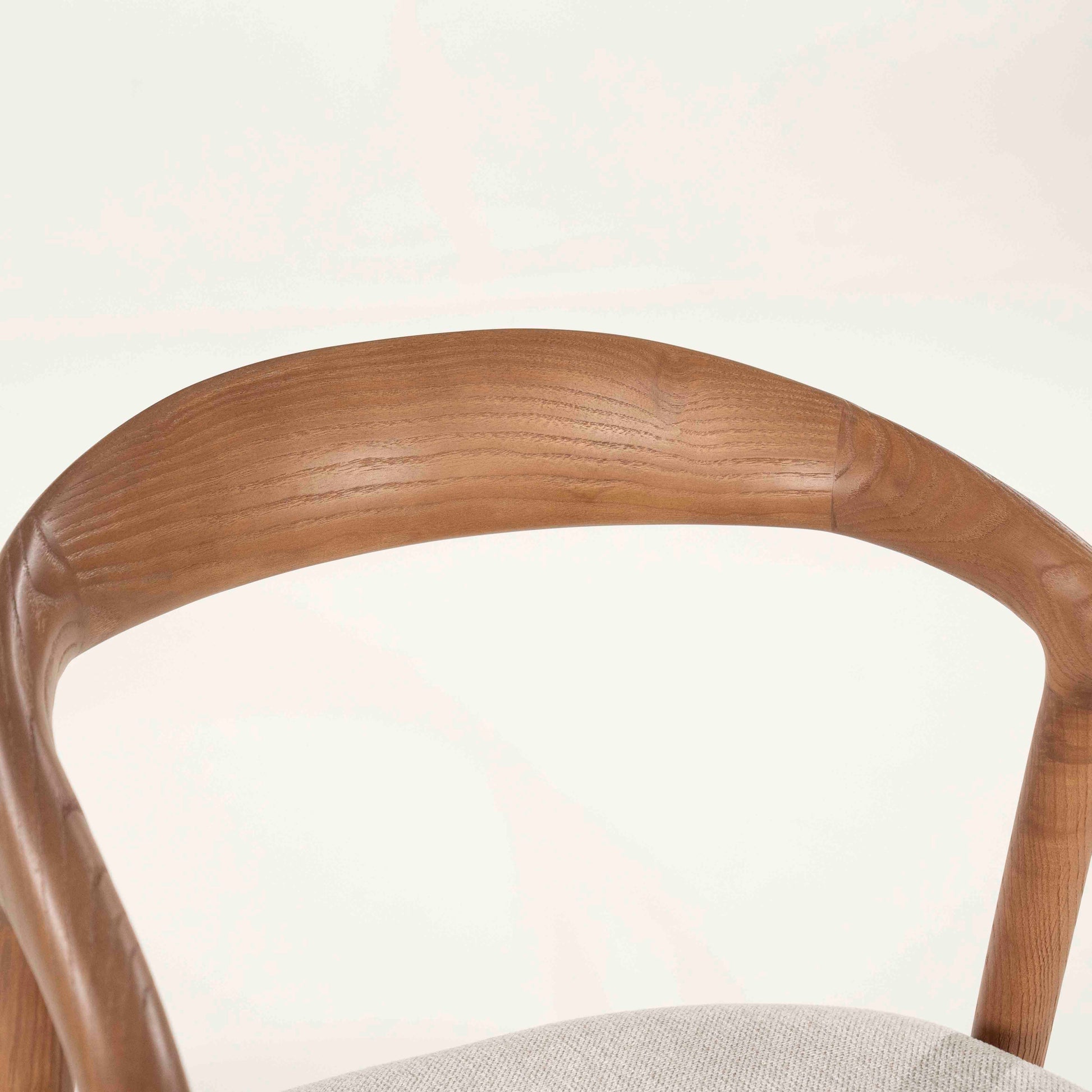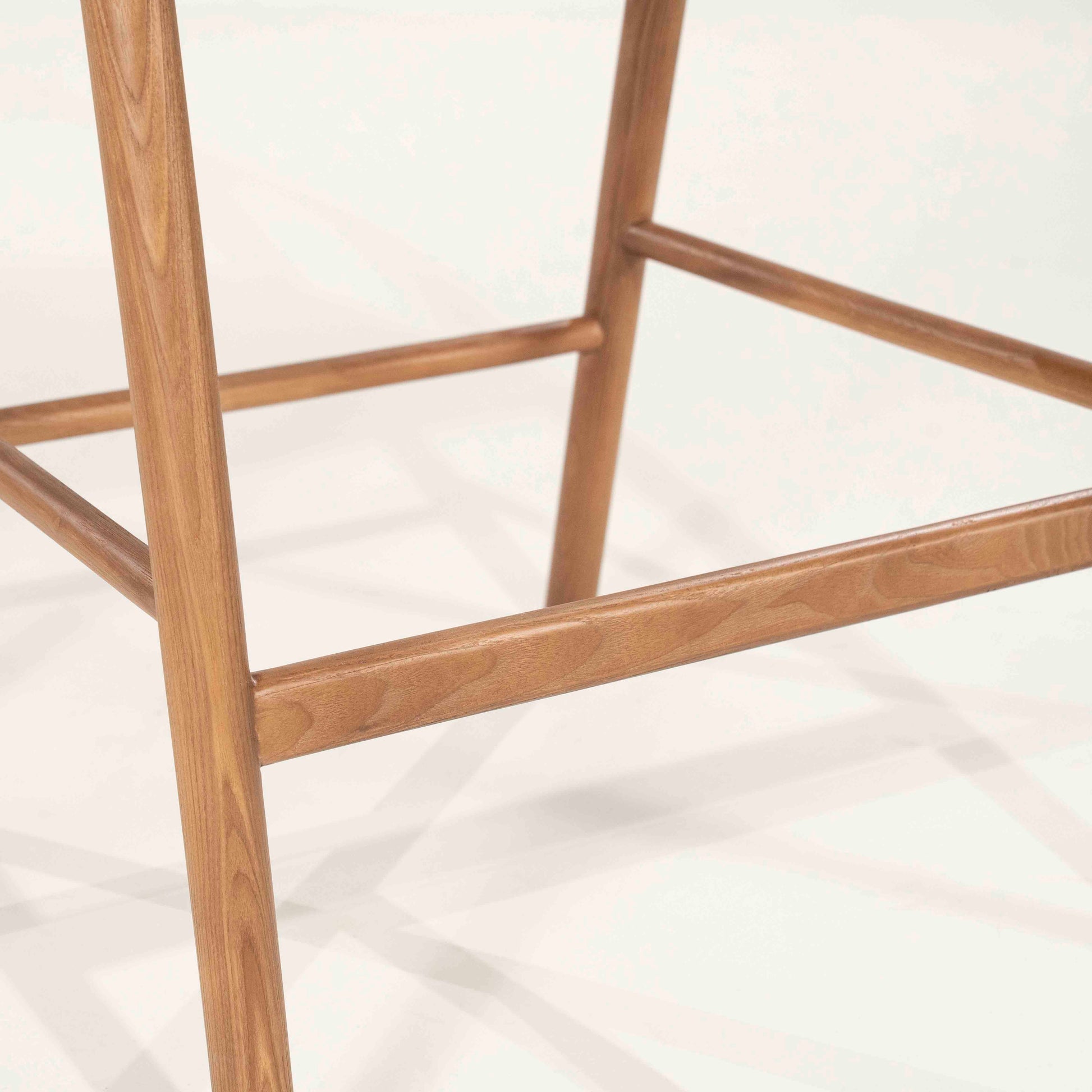 Denne barstolen kombinerer skandinavisk enkelhet med varmt treverk i ask. Den avrundede ryggstøtten og myke linfargede sitteputen gir både støtte og komfort, mens de slanke linjene tilfører et moderne og lett uttrykk.