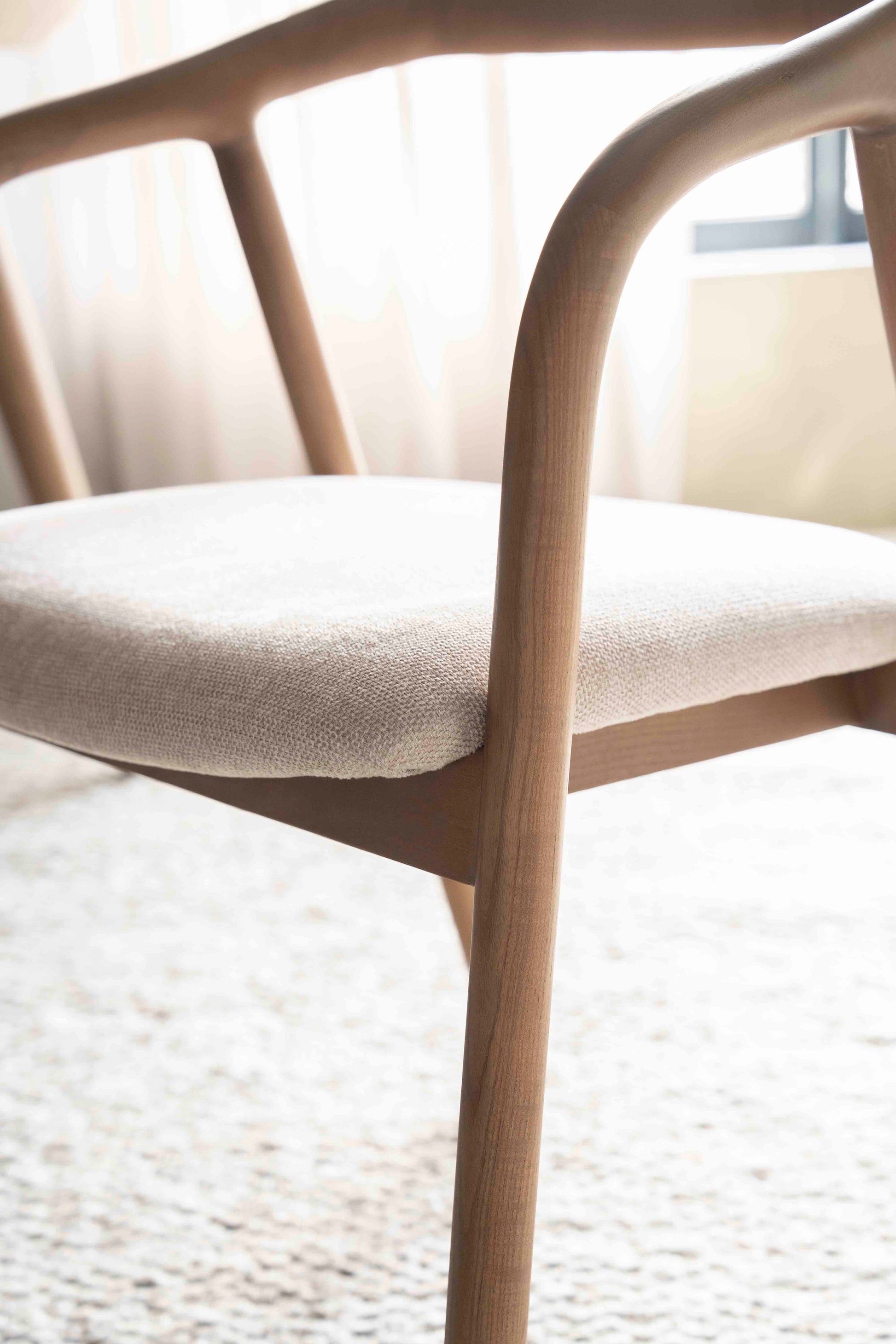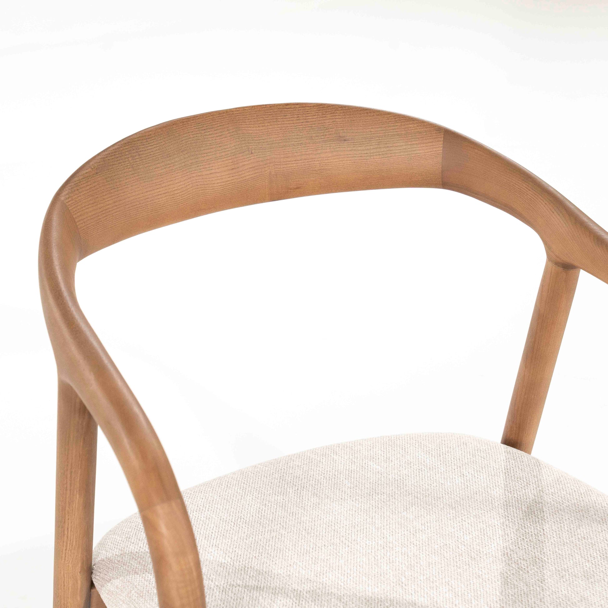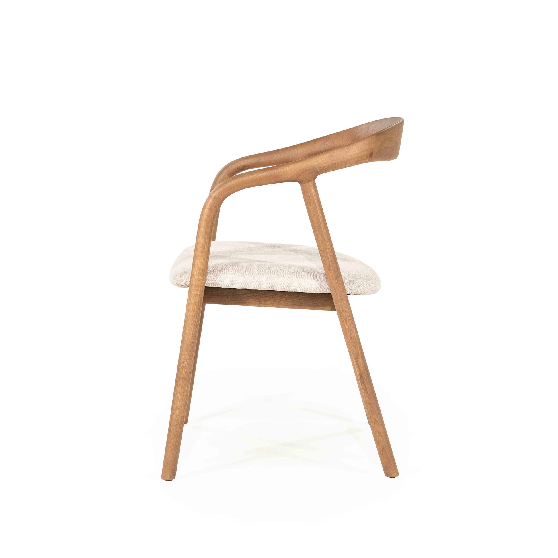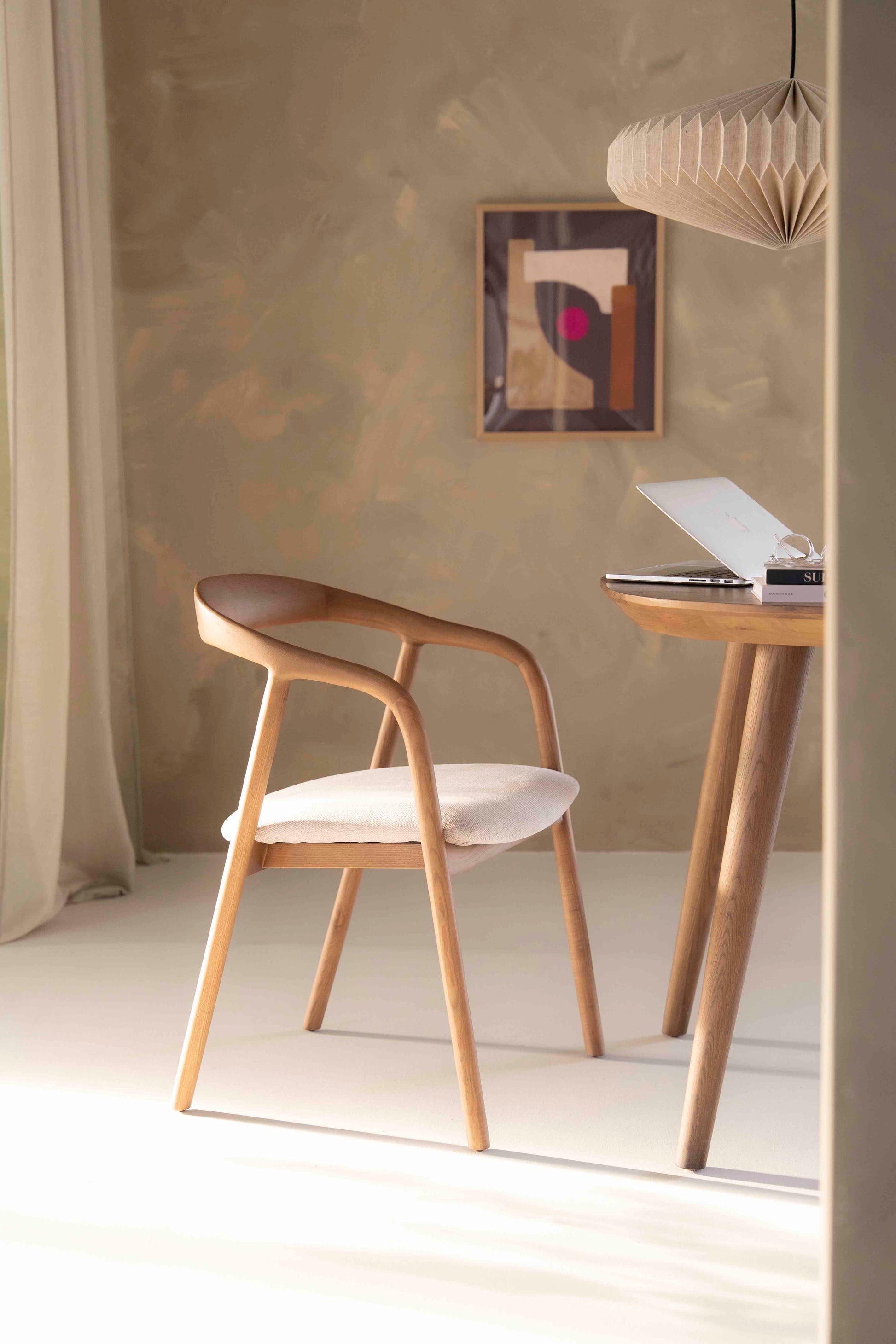 Denne spisestolen kombinerer skandinavisk enkelhet med varmt treverk i ask. Den avrundede ryggstøtten og myke linfargede sitteputen gir både støtte og komfort, mens de slanke linjene tilfører et moderne og lett uttrykk. Perfekt til spiseplassen, kontoret eller som en elegant ekstra stol i stuen.