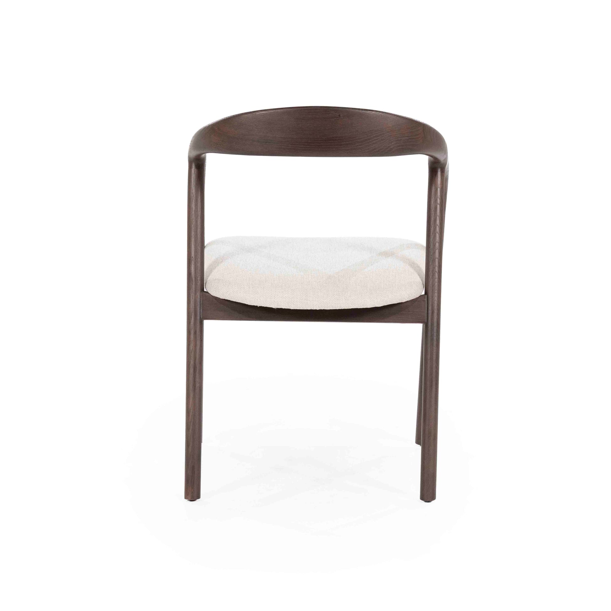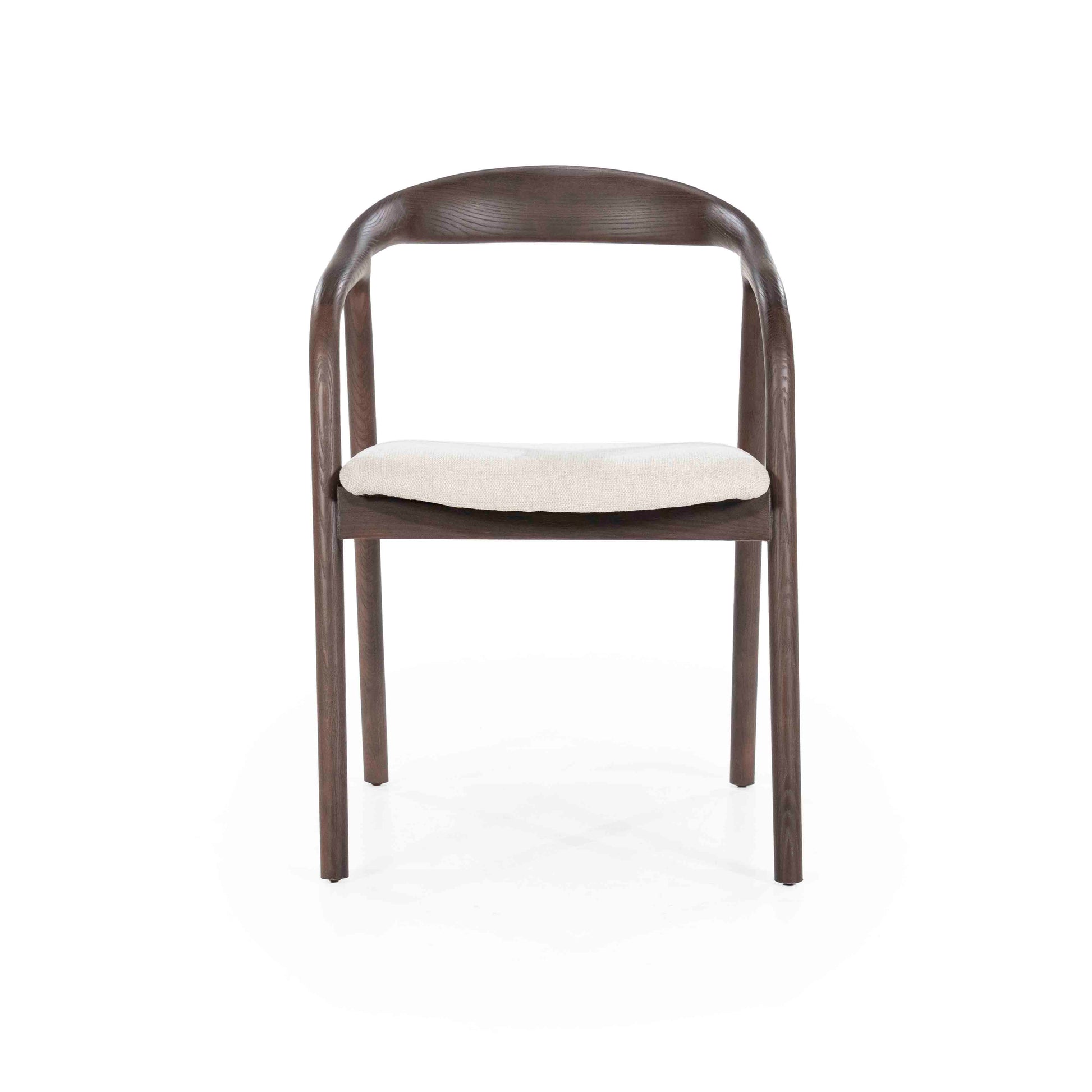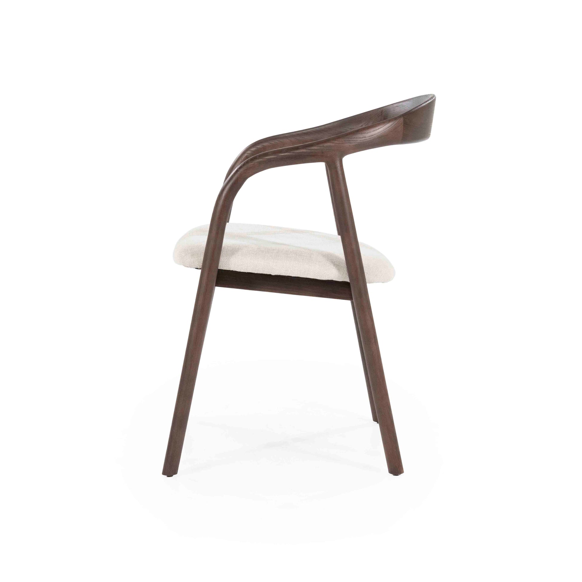 En elegant spisestol som kombinerer skandinavisk minimalisme med naturlige materialer. Den buede rammen i mørk ask gir stolen et lett og organisk uttrykk, mens det polstrede setet i lyst stoff sørger for komfort ved bordet. En tidløs stol som passer like godt i moderne som klassiske interiør.