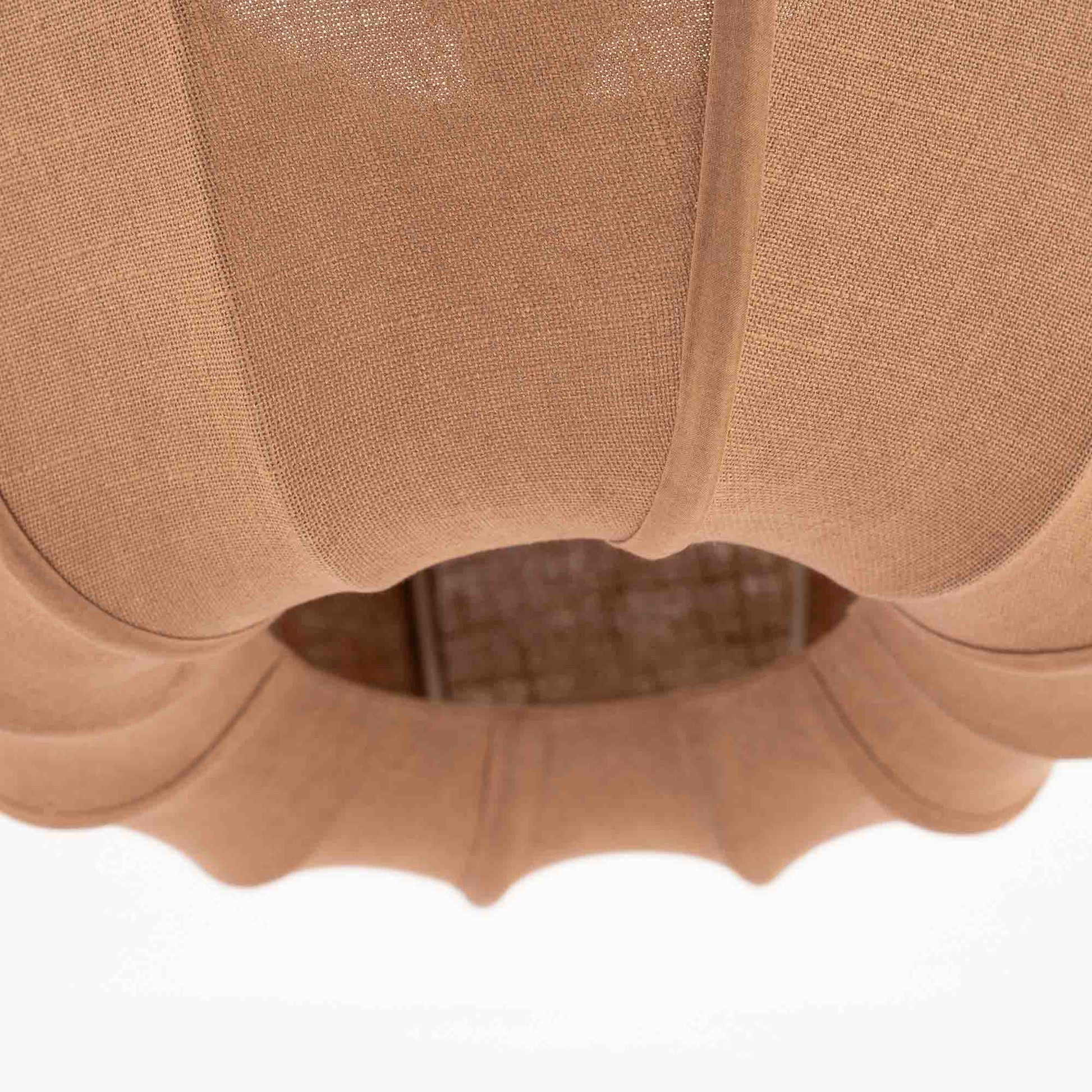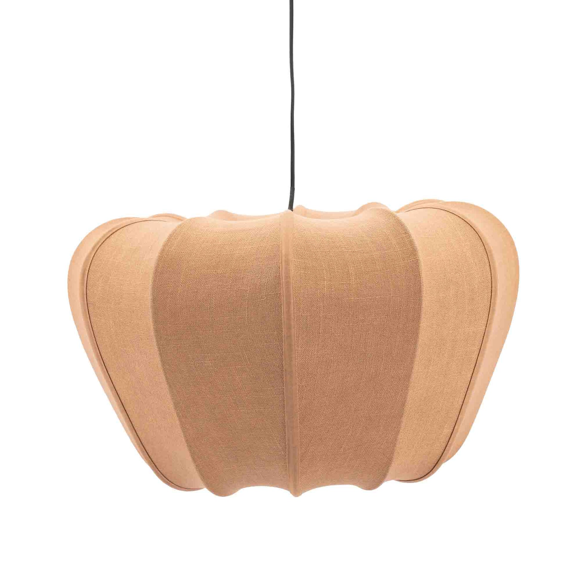 Denne elegante pendellampen kombinerer myke tekstiler med et minimalistisk jernfundament, noe som gir et varmt og organisk uttrykk til ethvert rom. Den skulpturelle formen skaper et behagelig, diffust lys som passer perfekt over spisebordet, i stuen eller i et soverom hvor du ønsker en rolig og innbydende atmosfære.
