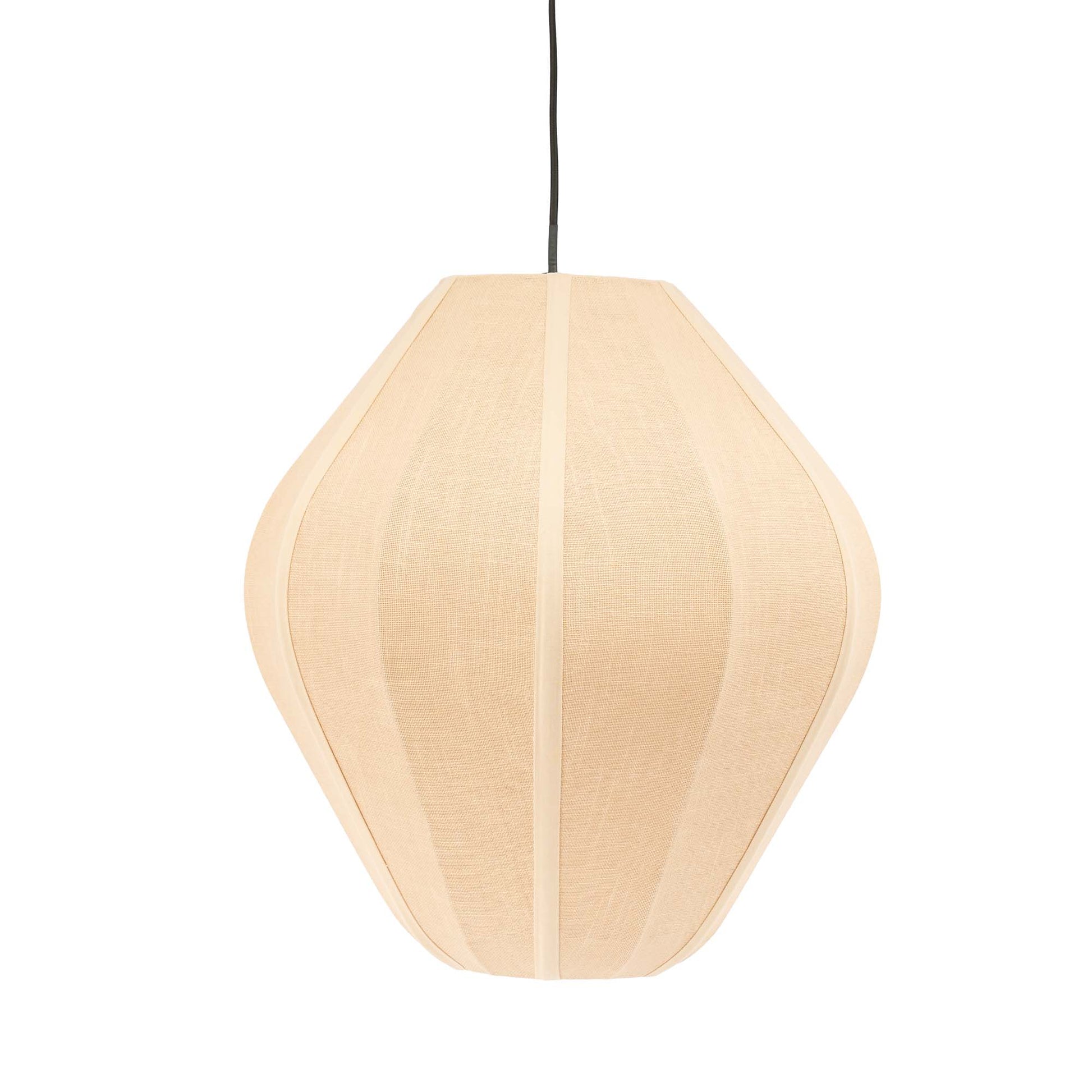 Denne elegante pendellampen kombinerer myke tekstiler med et minimalistisk jernfundament, noe som gir et varmt og organisk uttrykk til ethvert rom. Den skulpturelle formen skaper et behagelig, diffust lys som passer perfekt over spisebordet, i stuen eller i et soverom hvor du ønsker en rolig og innbydende atmosfære.